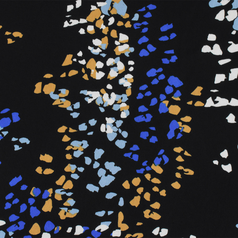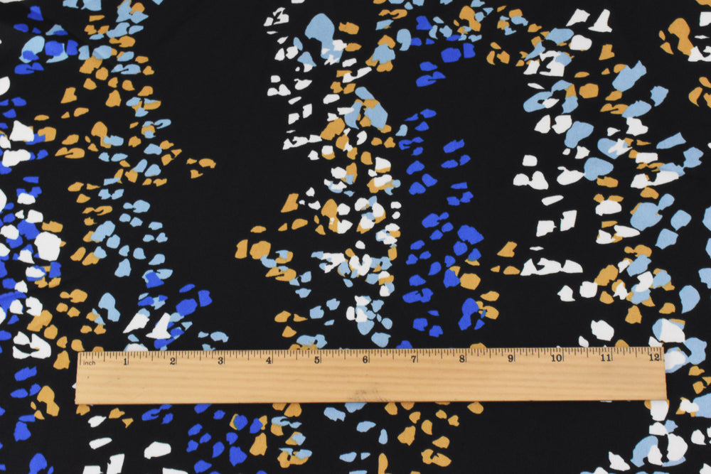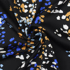 Black-Blue-Multi Abstract Printed Stretch Poly Spandex Satin Woven Fabric