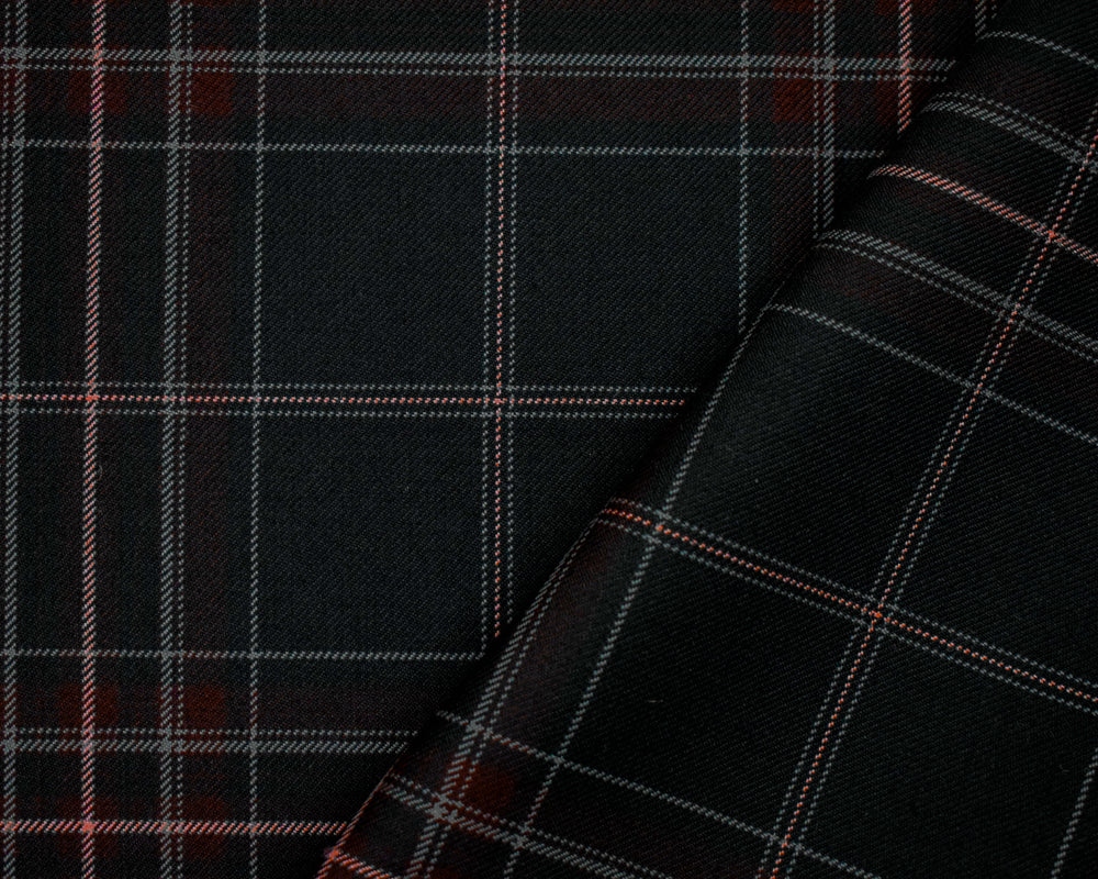 Black-Brown-Multi Poly-Wool Blend Plaid Twill Woven Suiting Fabric