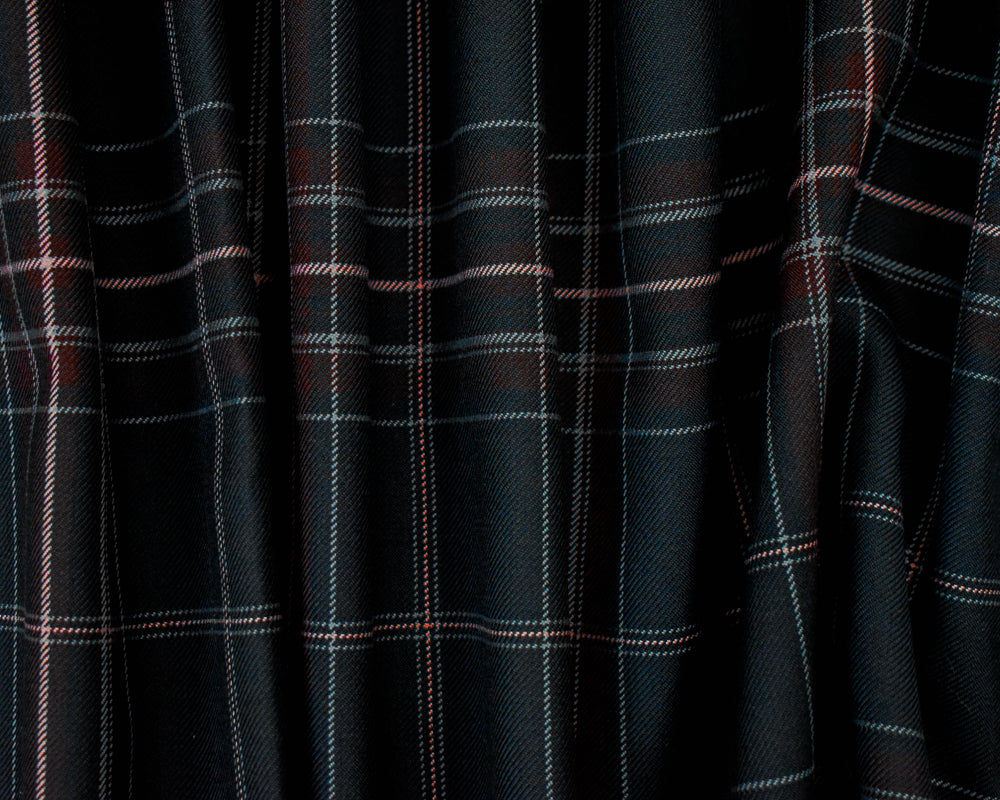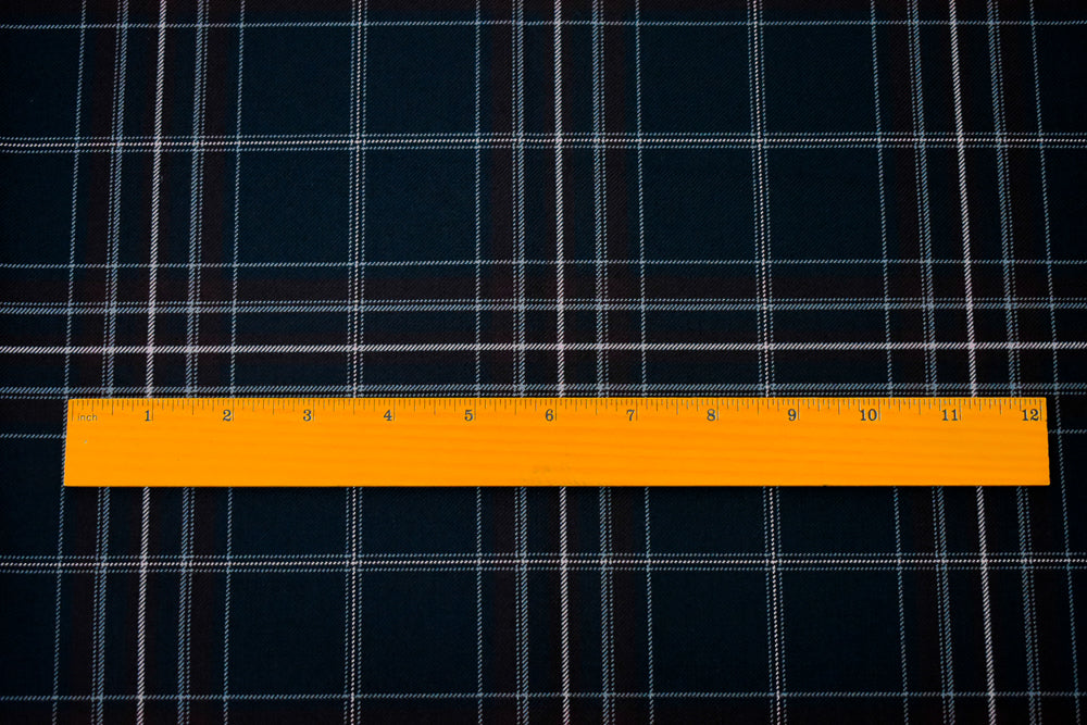 -Polyester and wool blend plaid/check pattern twill suiting fabric. Made in Japan.