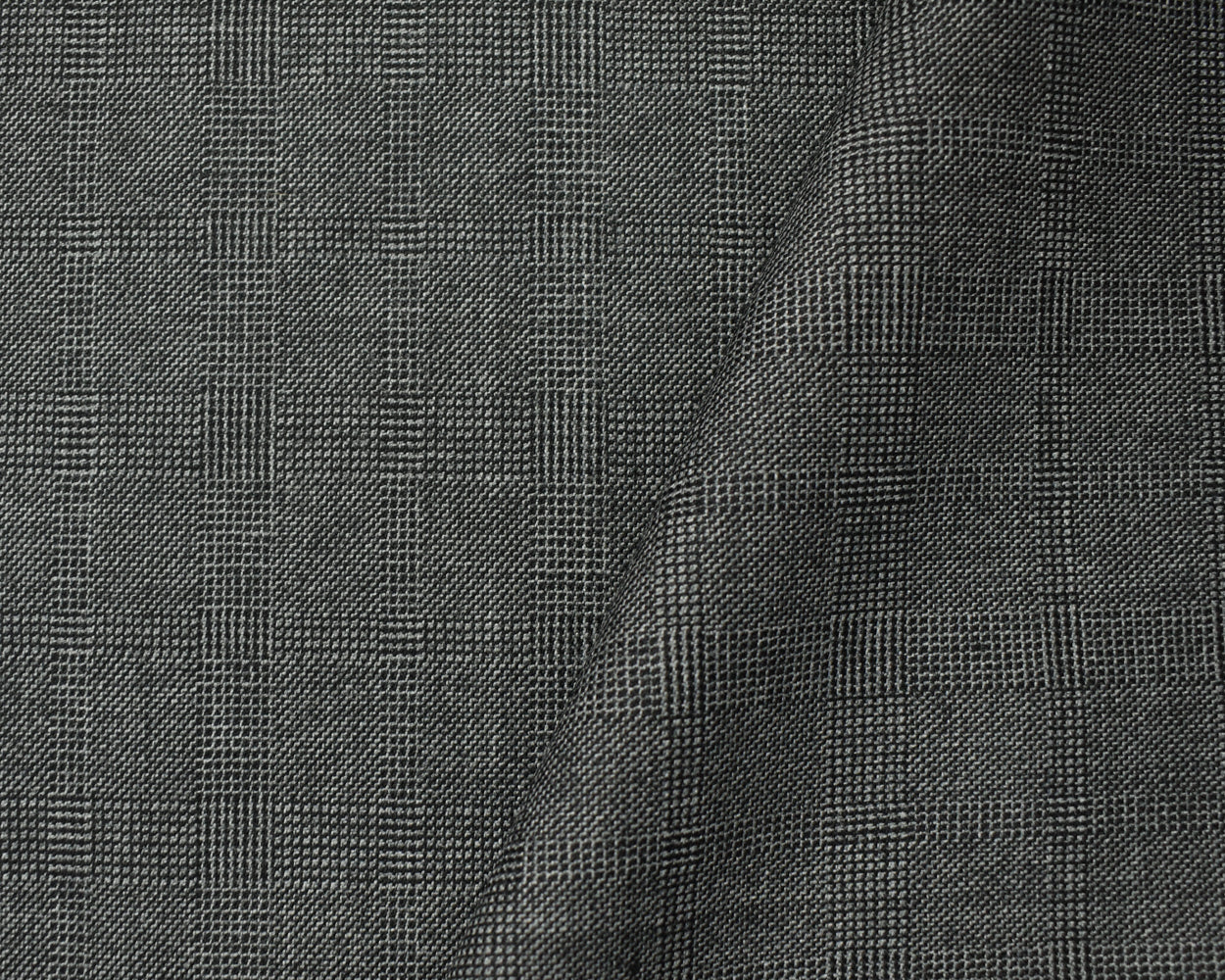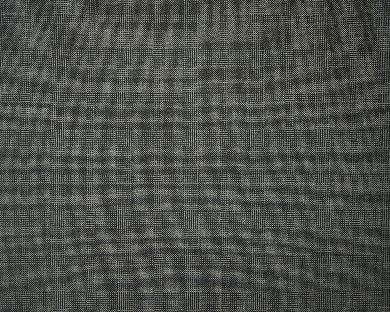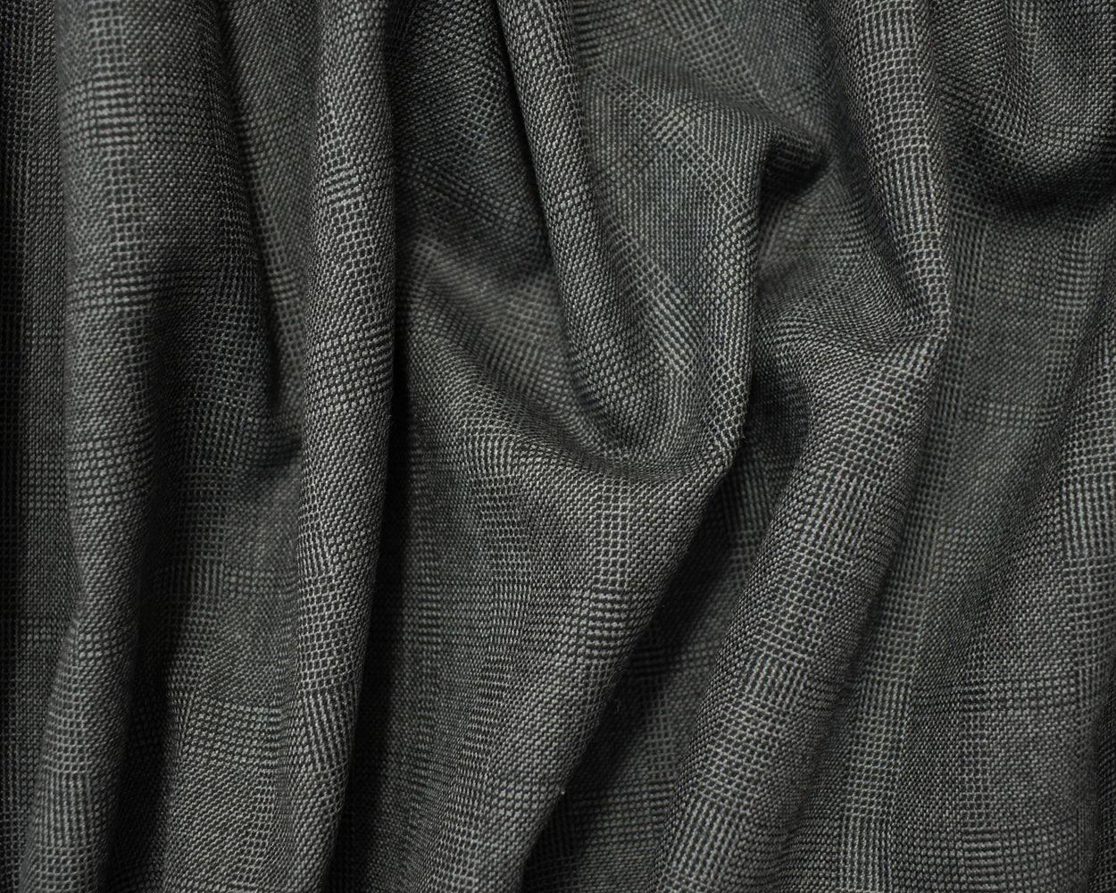 Black-Gray Wool Cotton Plaid-Check Twill Woven Suiting Fabric