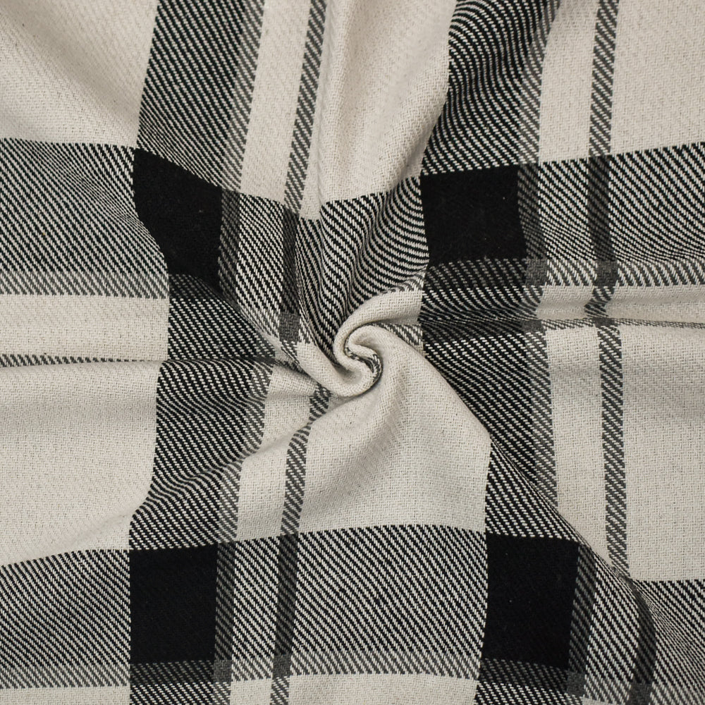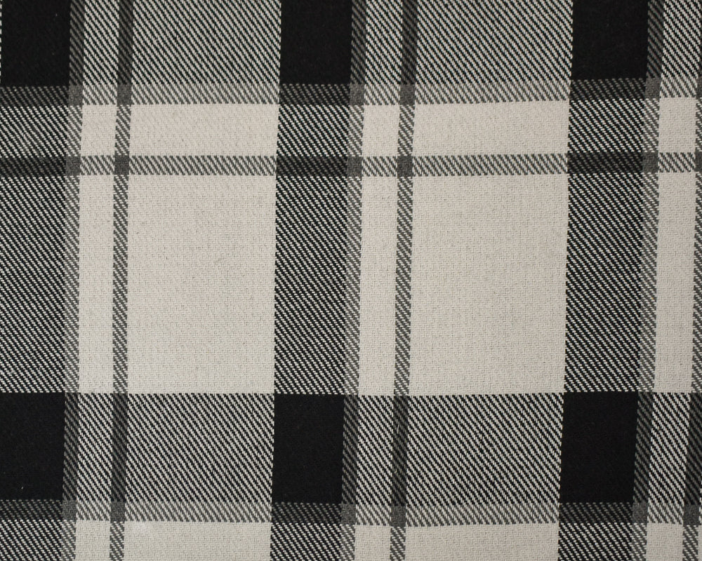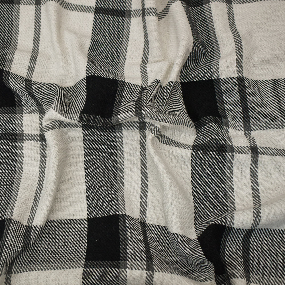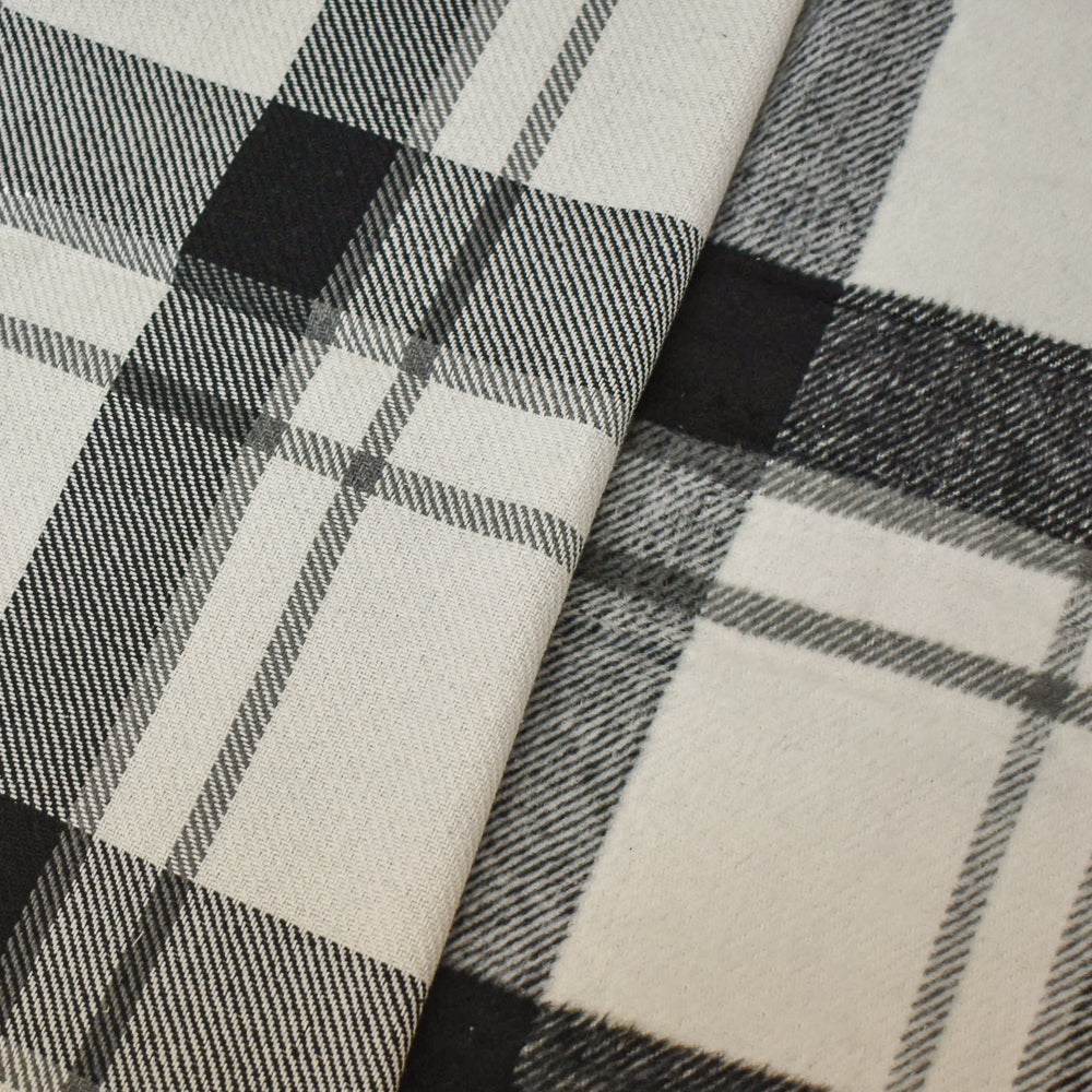 Black-White-Gray Melton Poly-Wool Single Sided Brushed Plaid Woven Fabric