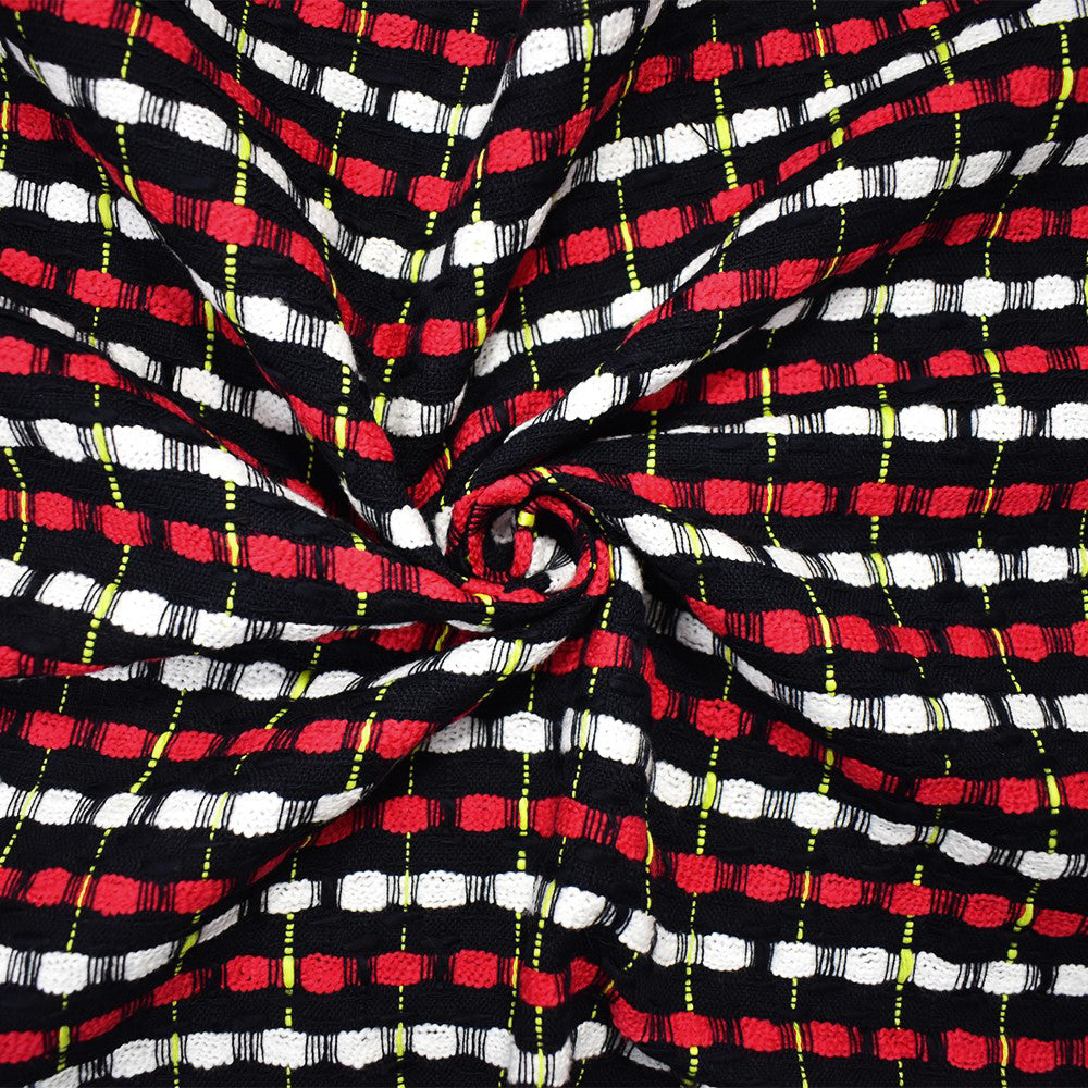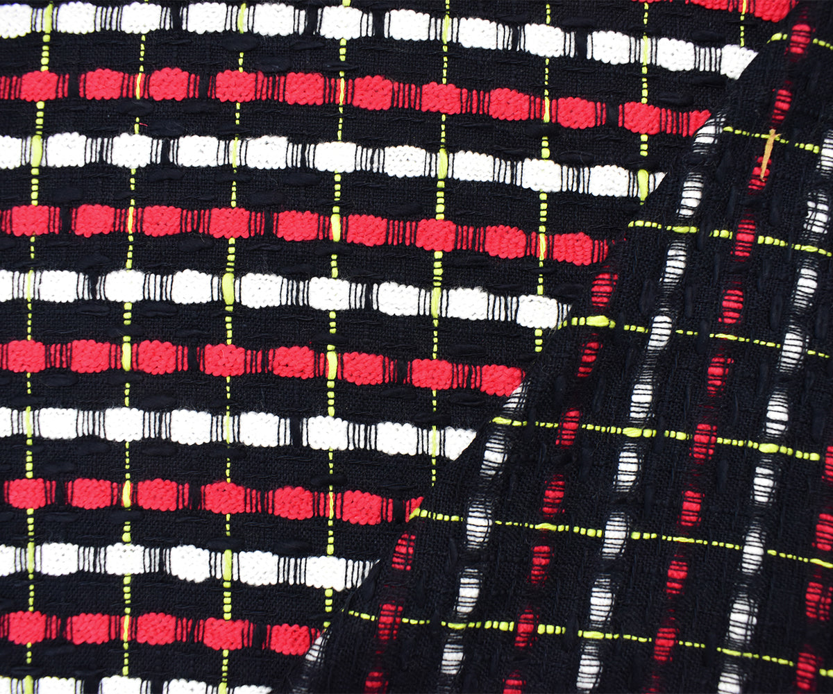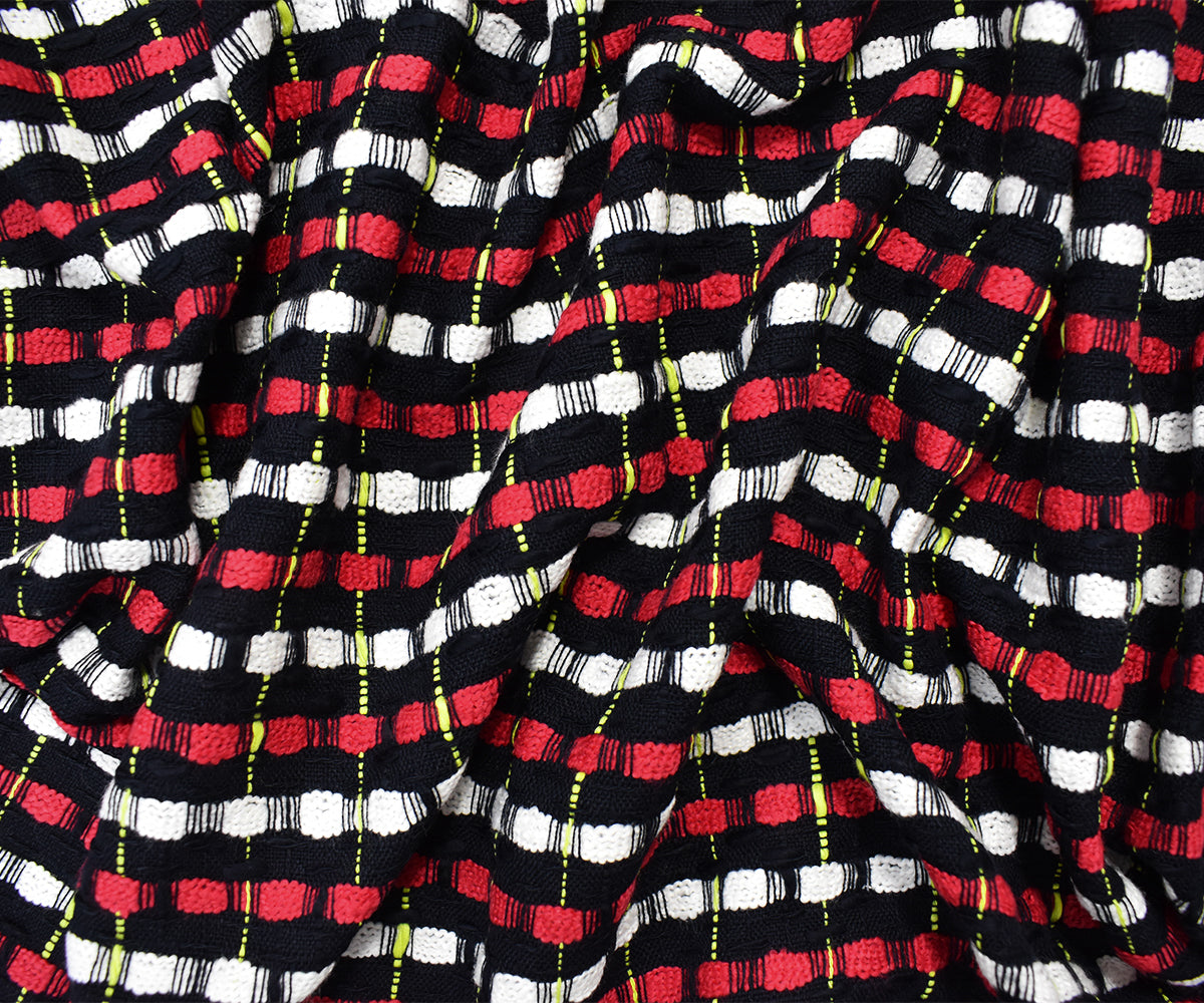 Black-White-Multi Cotton Stripe Slub Dobby Woven Fabric