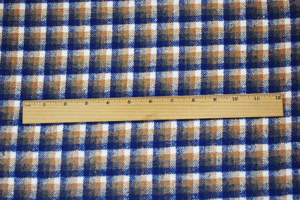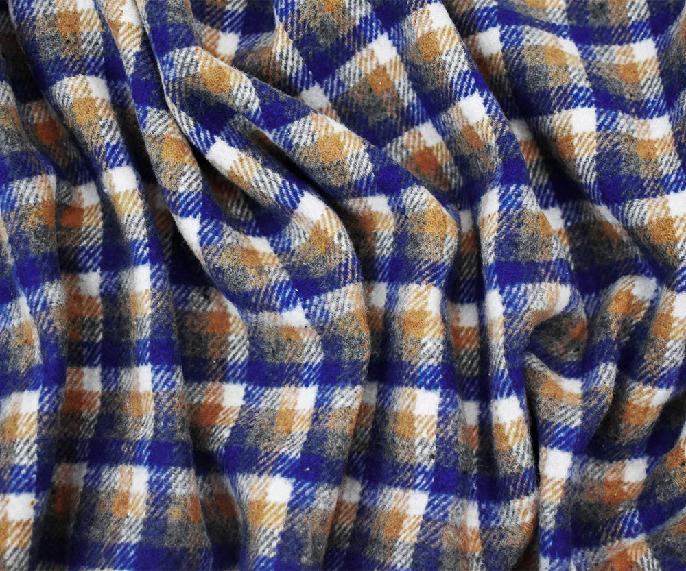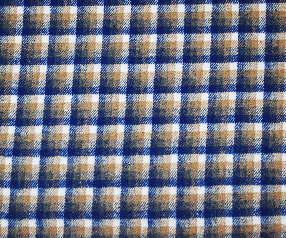 Blue-Beige-White Poly-Wool Single Sided Brush Plaid Jacketing Fabric