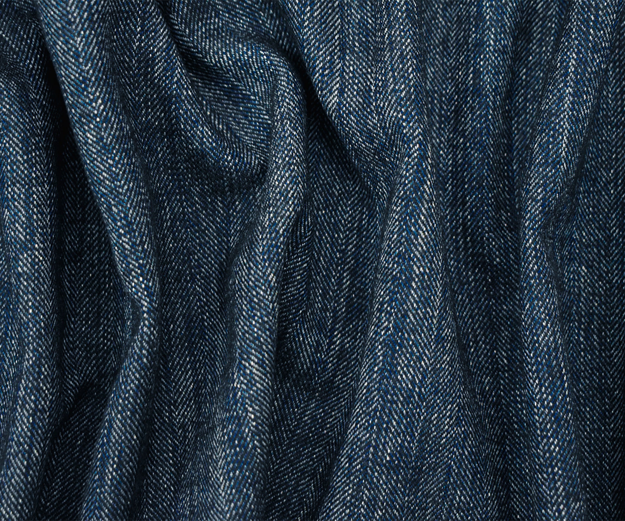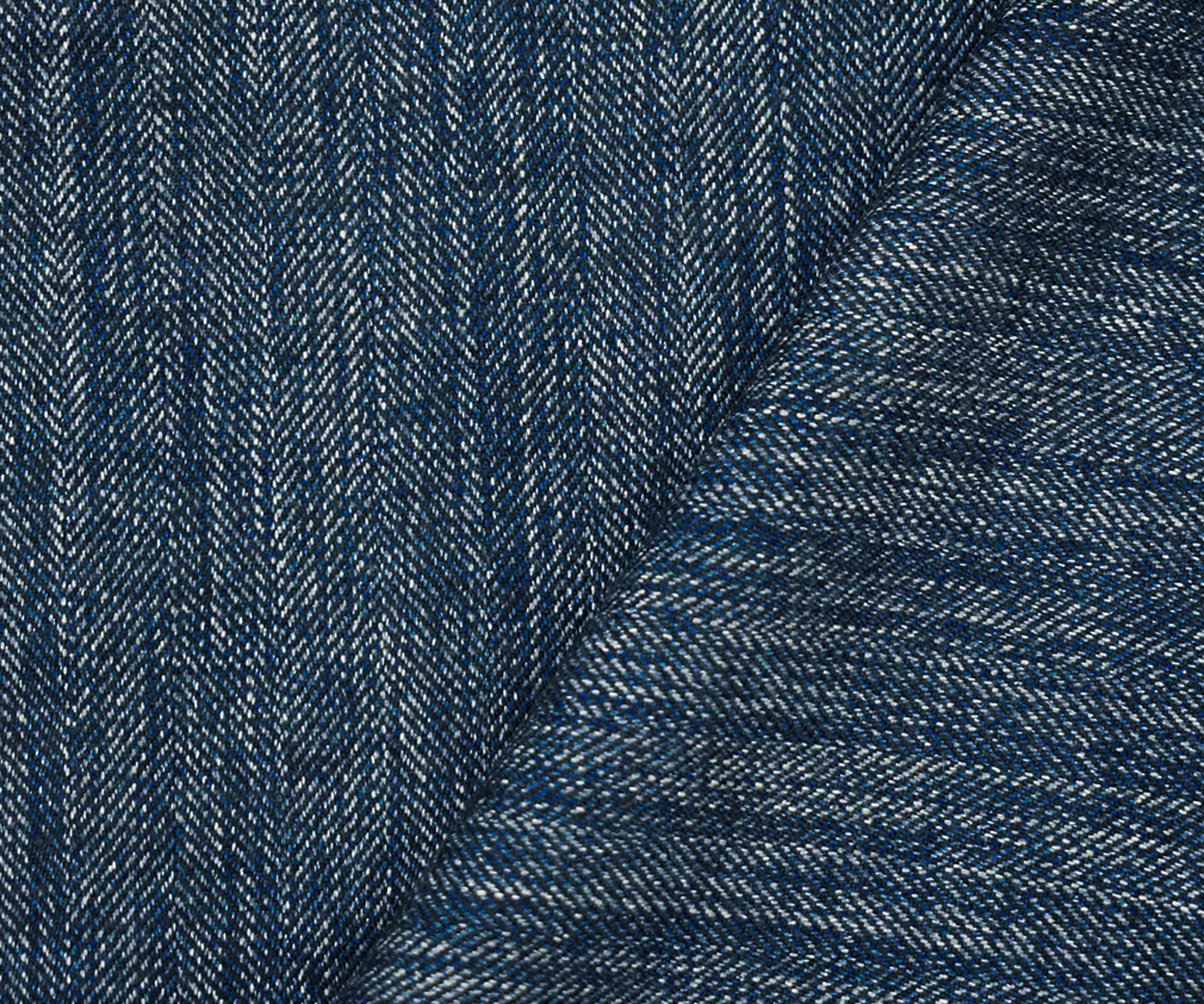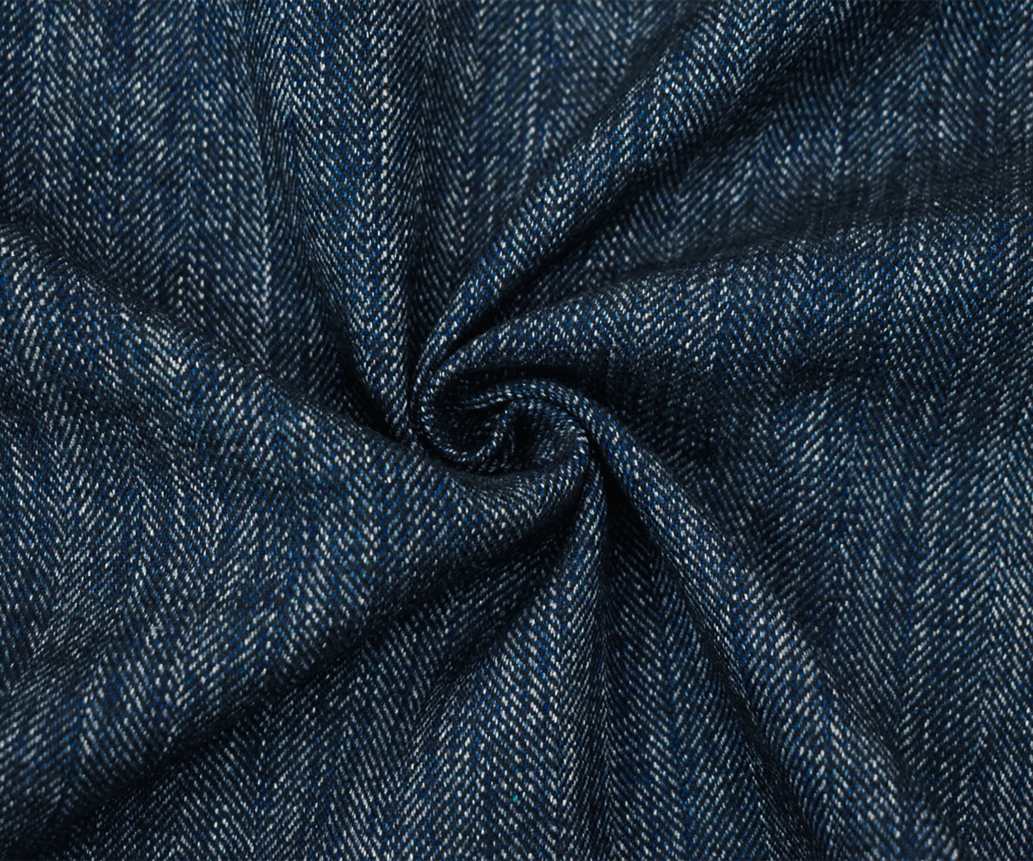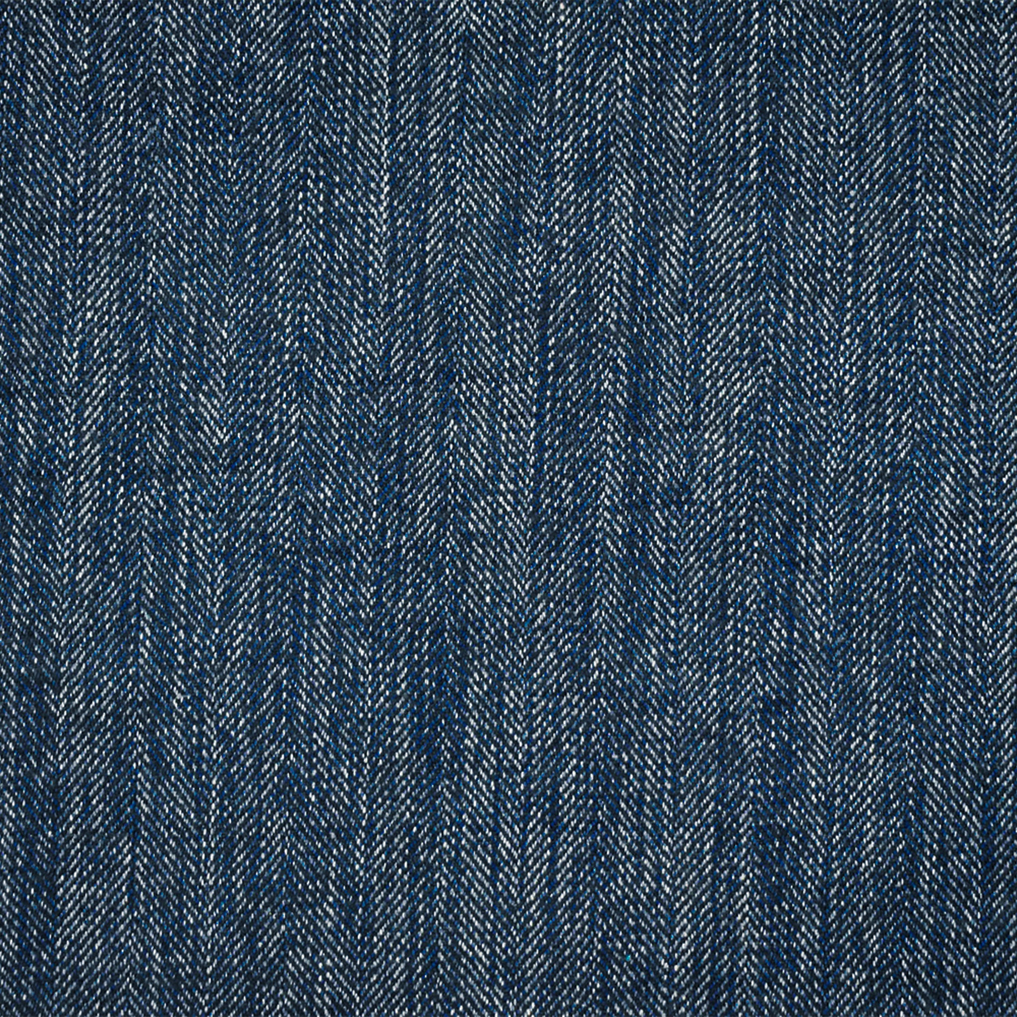 Blue-Black-White Poly-Wool Textured Herringbone Woven Suiting Fabric