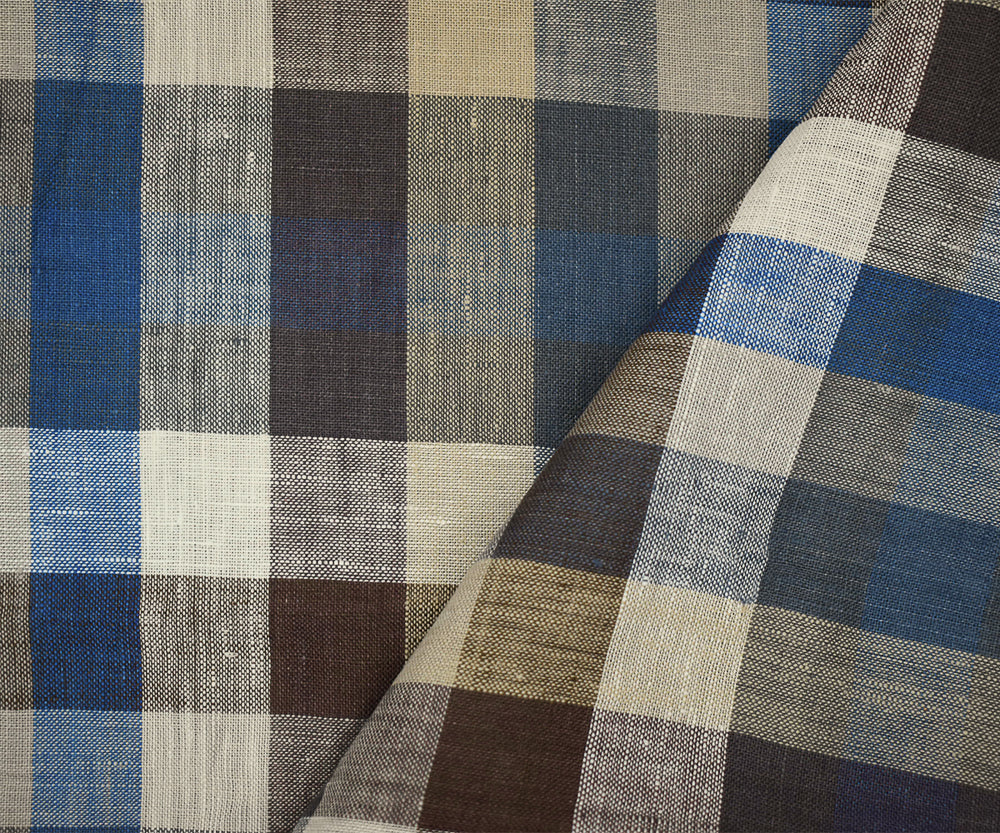 Blue-Brown-Multi Plaid Check Linen Woven Fabric
