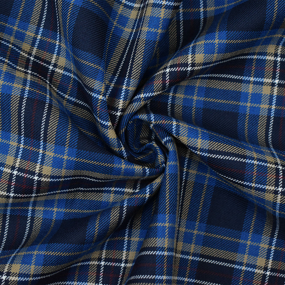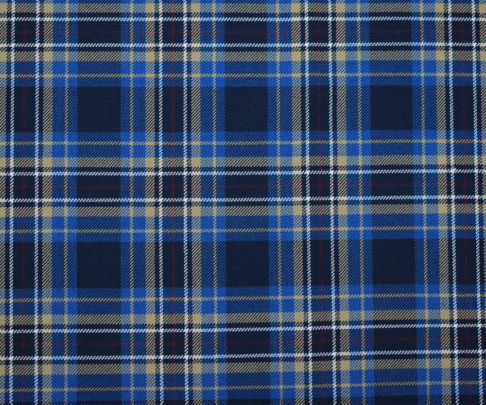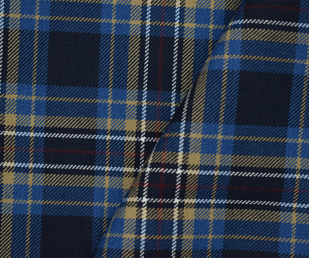 Blue-Brown-Multi Wool-Polyester Plaid Twill Suiting Woven Fabric