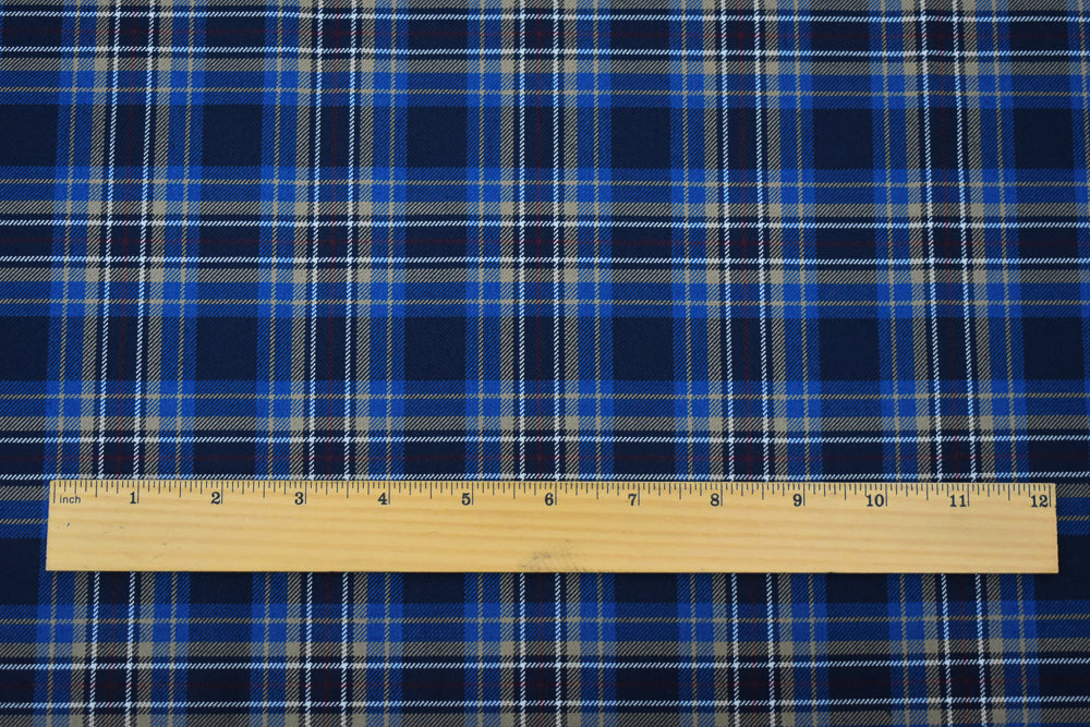 -Wool and polyester blend plaid/check twill woven suiting fabric. Made in Japan.