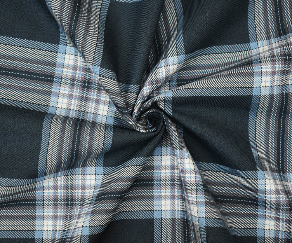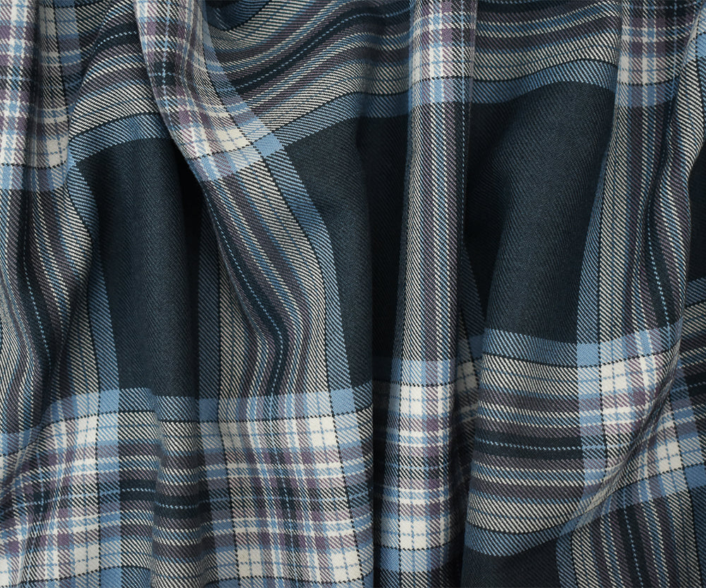 Blue-Mauve-Multi Poly-Wool Blend Plaid Twill Suiting Fabric