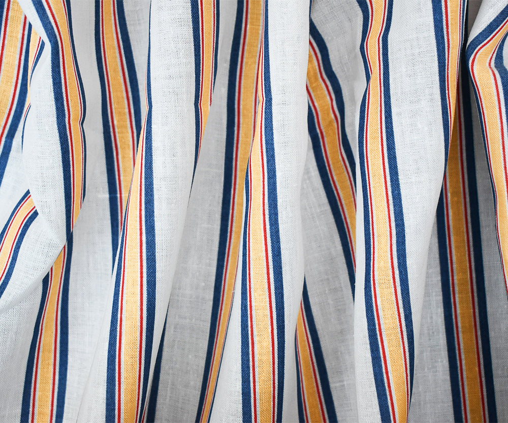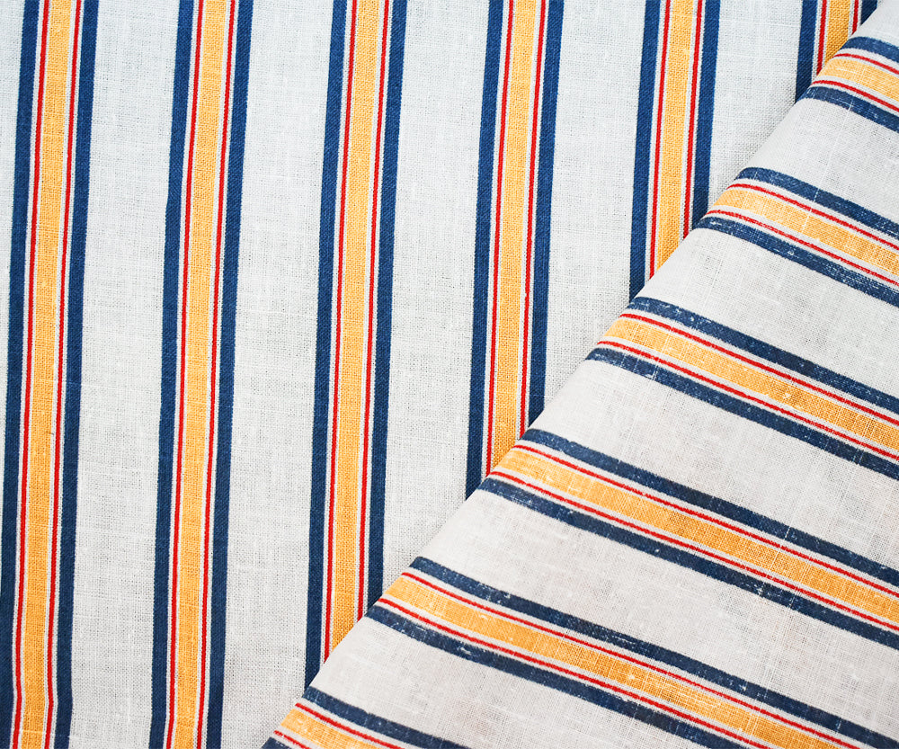 Blue-Red-Yellow Stripe Printed Linen Woven Fabric