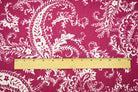 Blush Red-White Paisley Vine Printed Poly Slub Momie Crepe Woven Fabric
