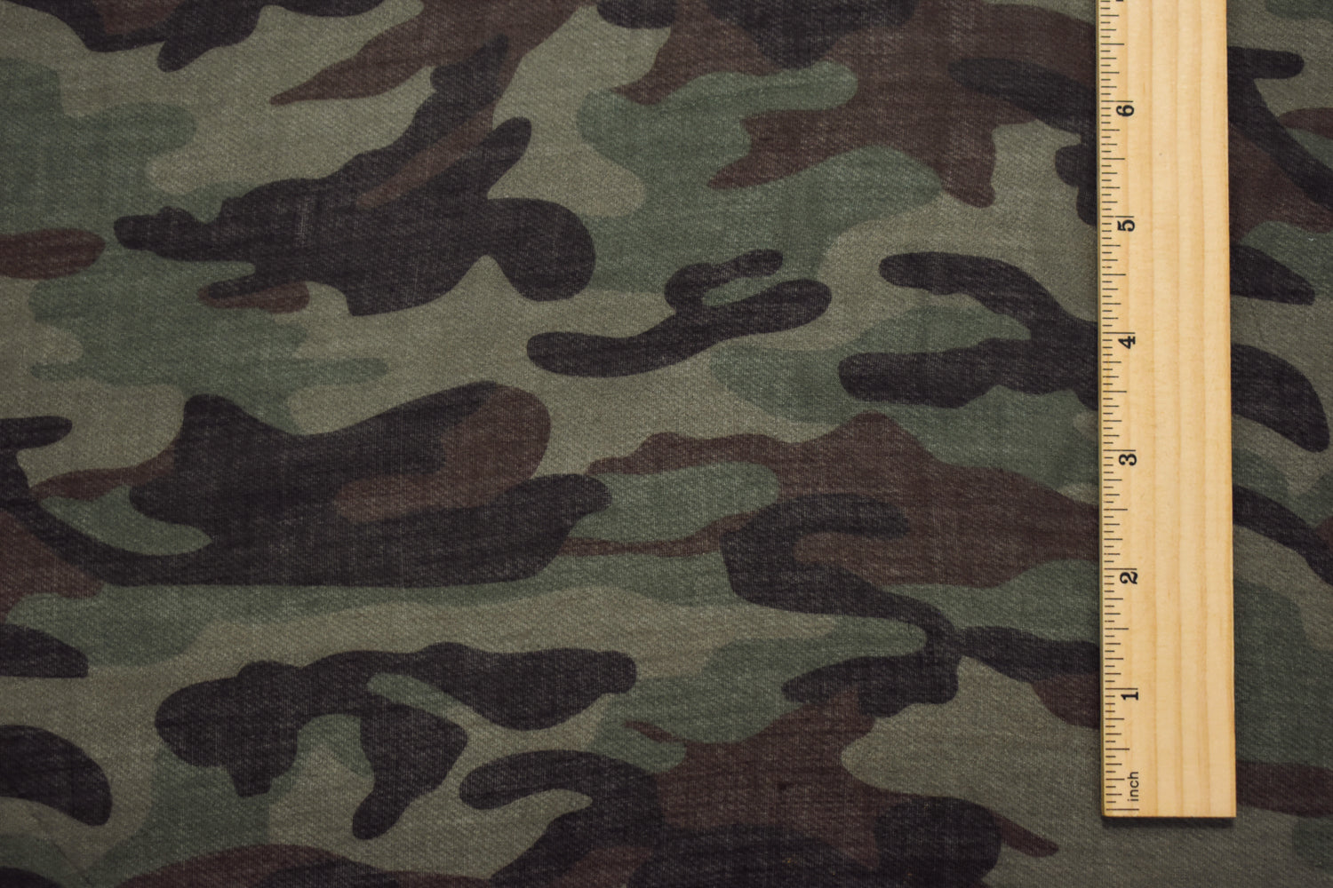 Brown-Green-Multi Cotton Famous Maker Camouflage Printed Voile Woven Fabric