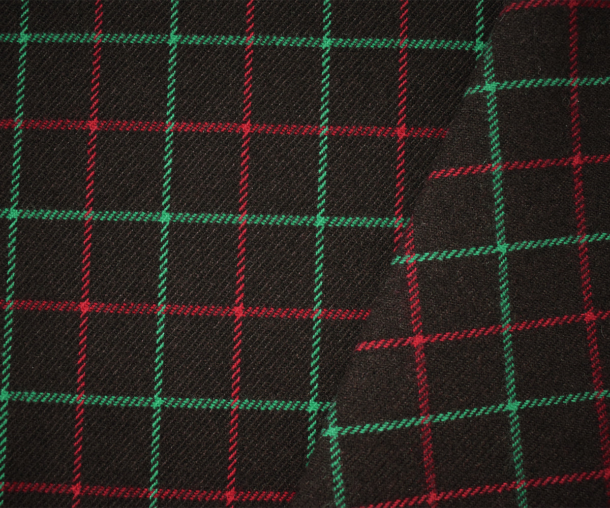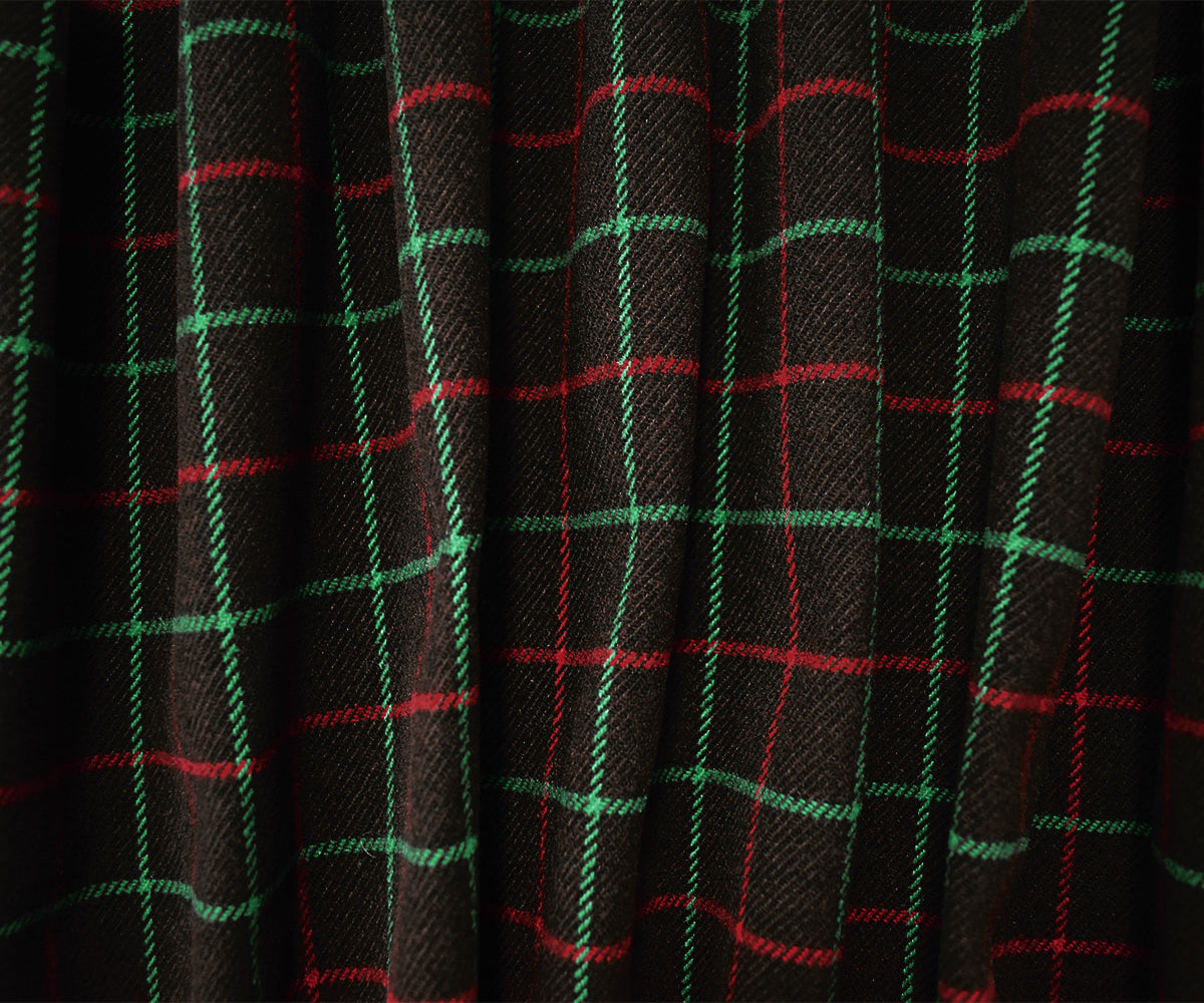 Brown-Green-Multi Poly Wool Check Twill Woven Jacketing Fabric