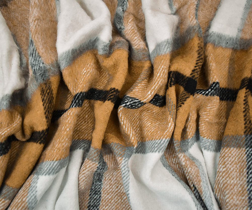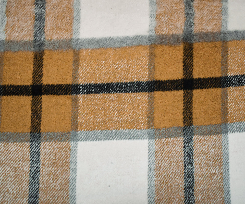 Brown-Multi Poly-Wool Single Sided Brush Plaid Woven Jacketing Fabric