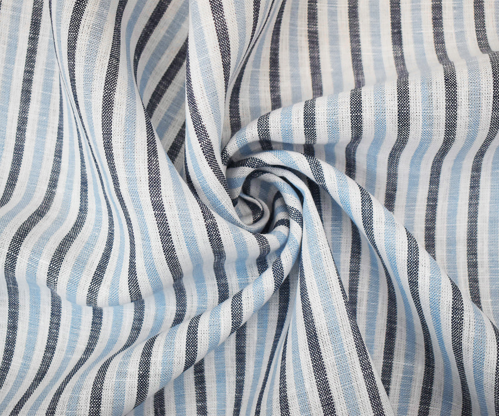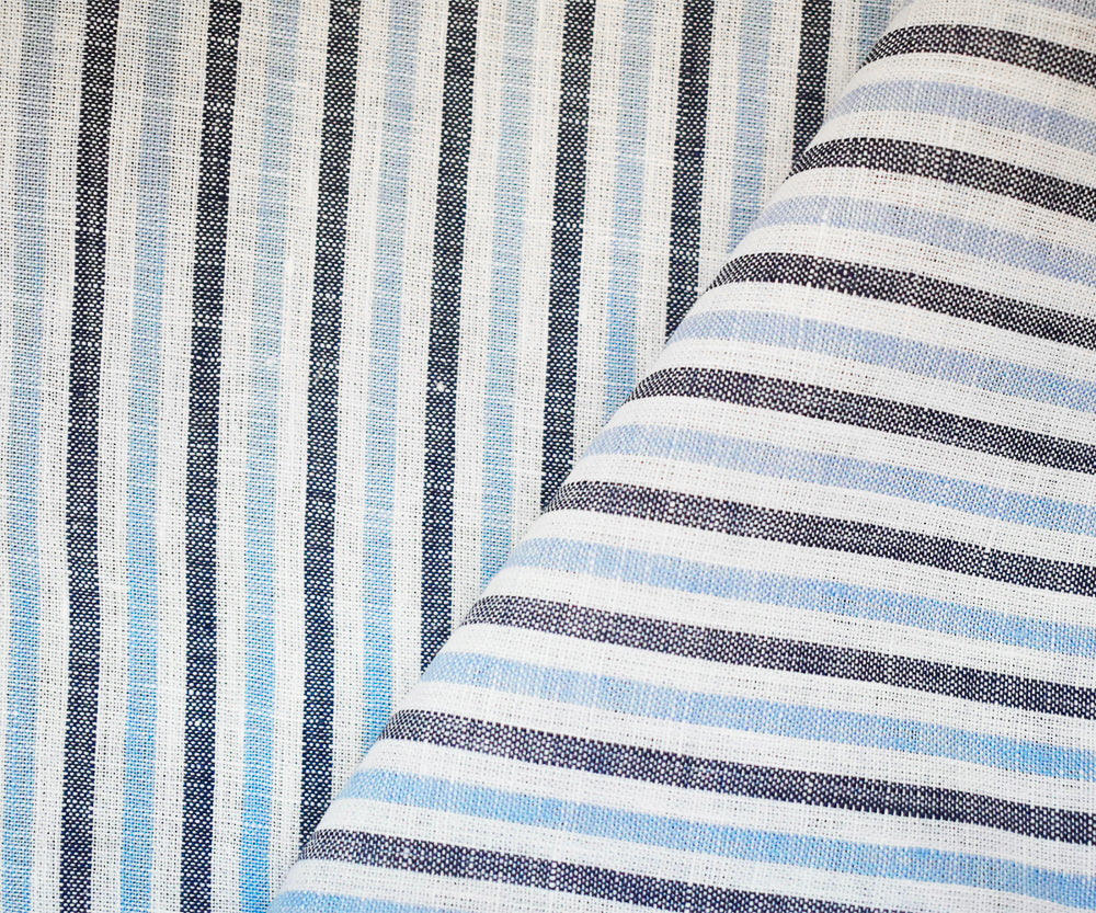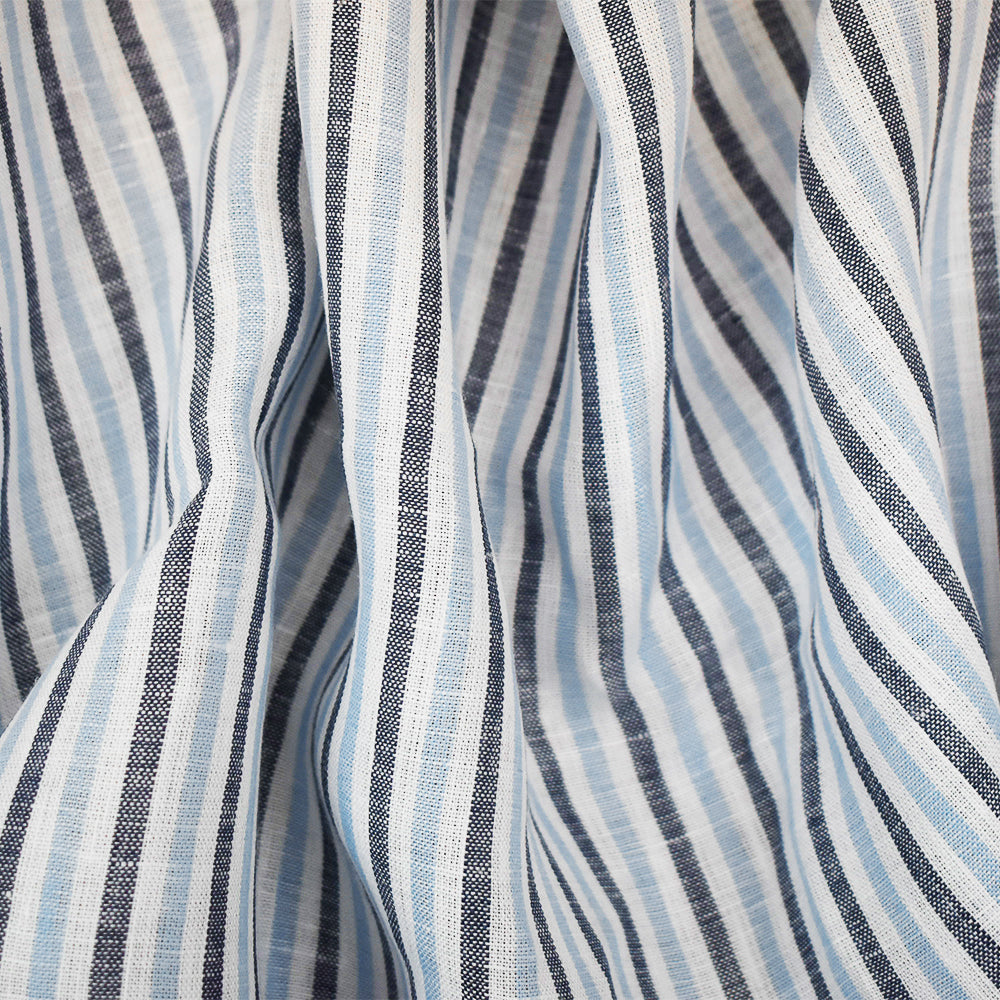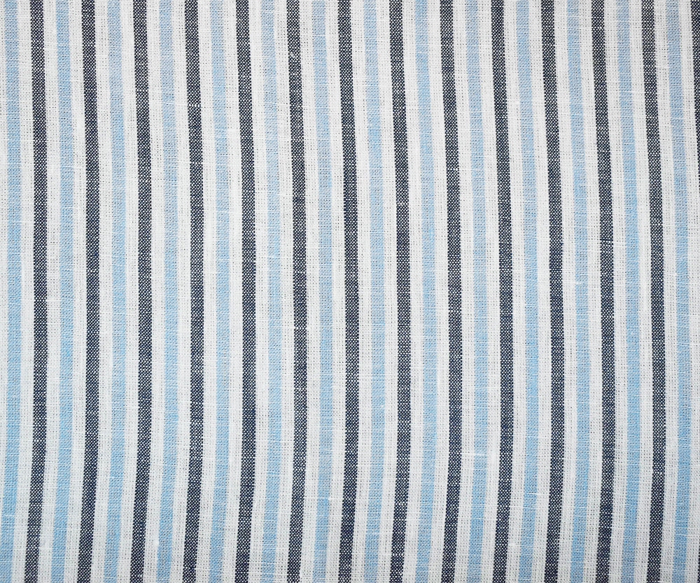 Dark Blue-Blue-White Spence Bryson Stripe Irish Linen Slub Woven Fabric