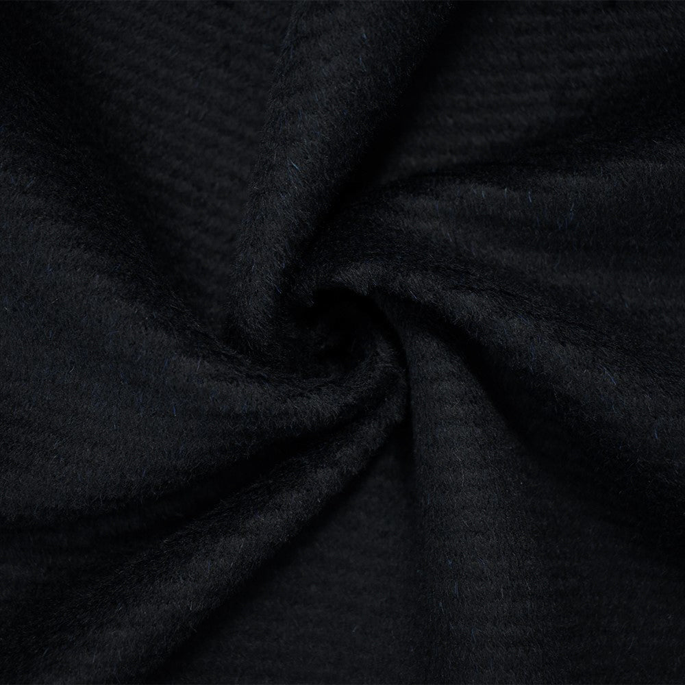 Deep Blue-Black Wool Poly Stripe Brushed Woven Jacketing Fabric