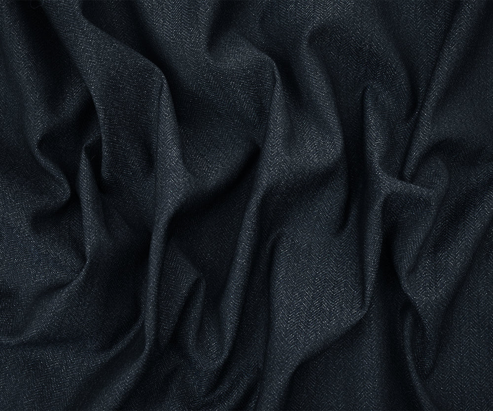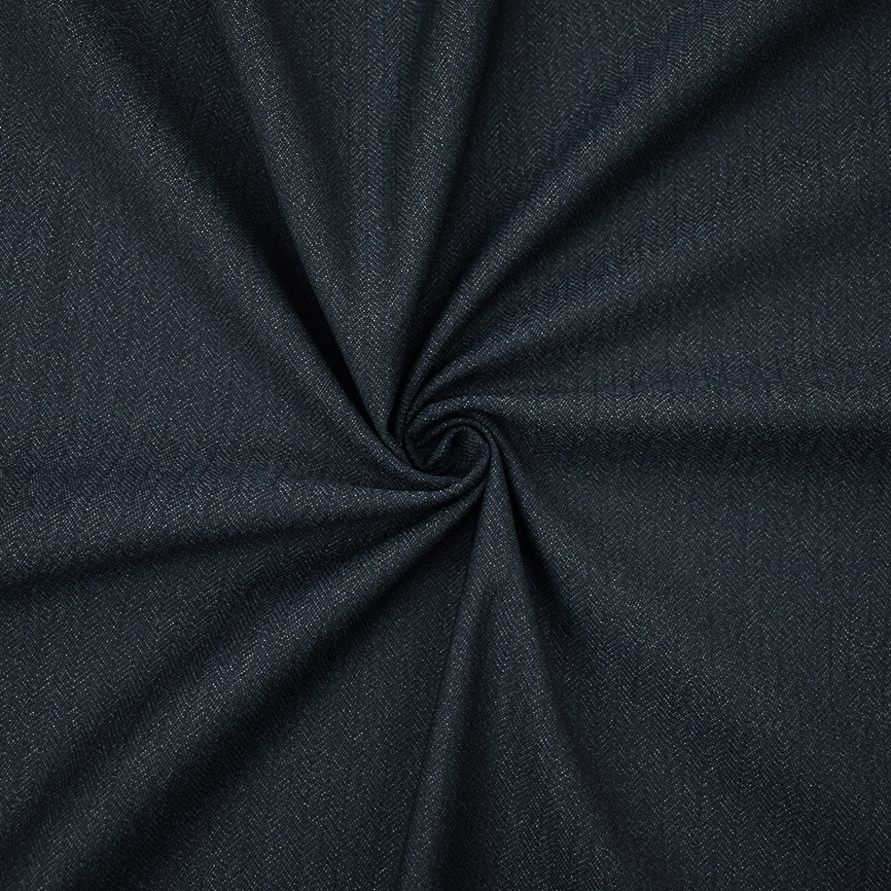 Deep Blue-Gray Poly-Wool Herringbone Stretch Suiting Woven Fabric