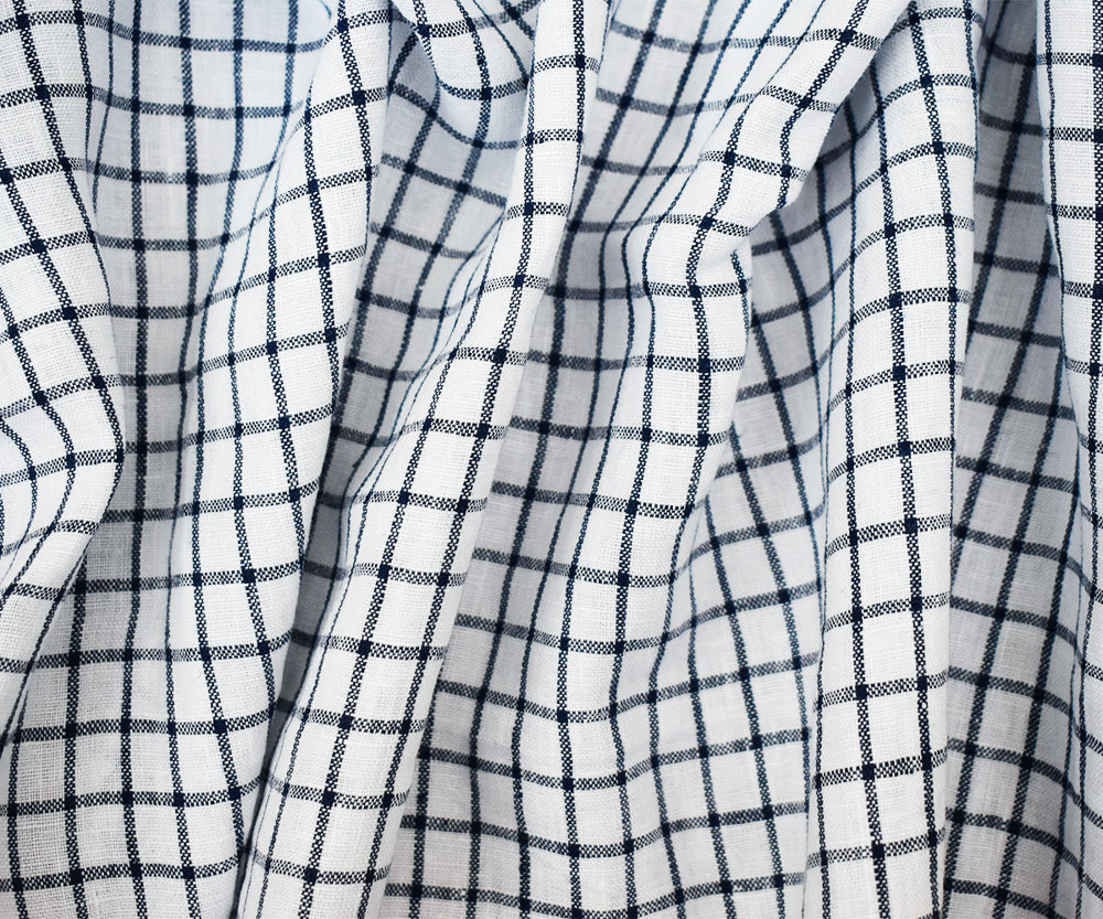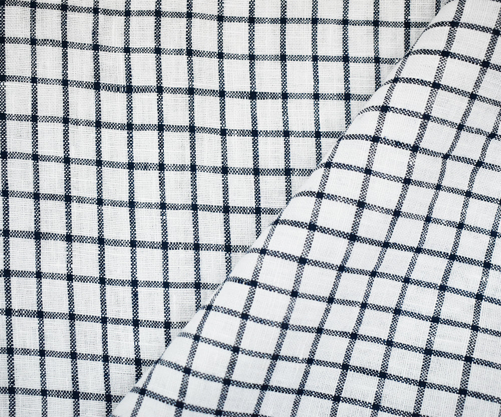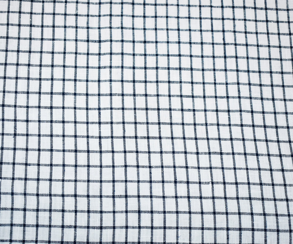 Deep Blue-White Moygashel Washed Grid Check Irish Linen Woven Fabric