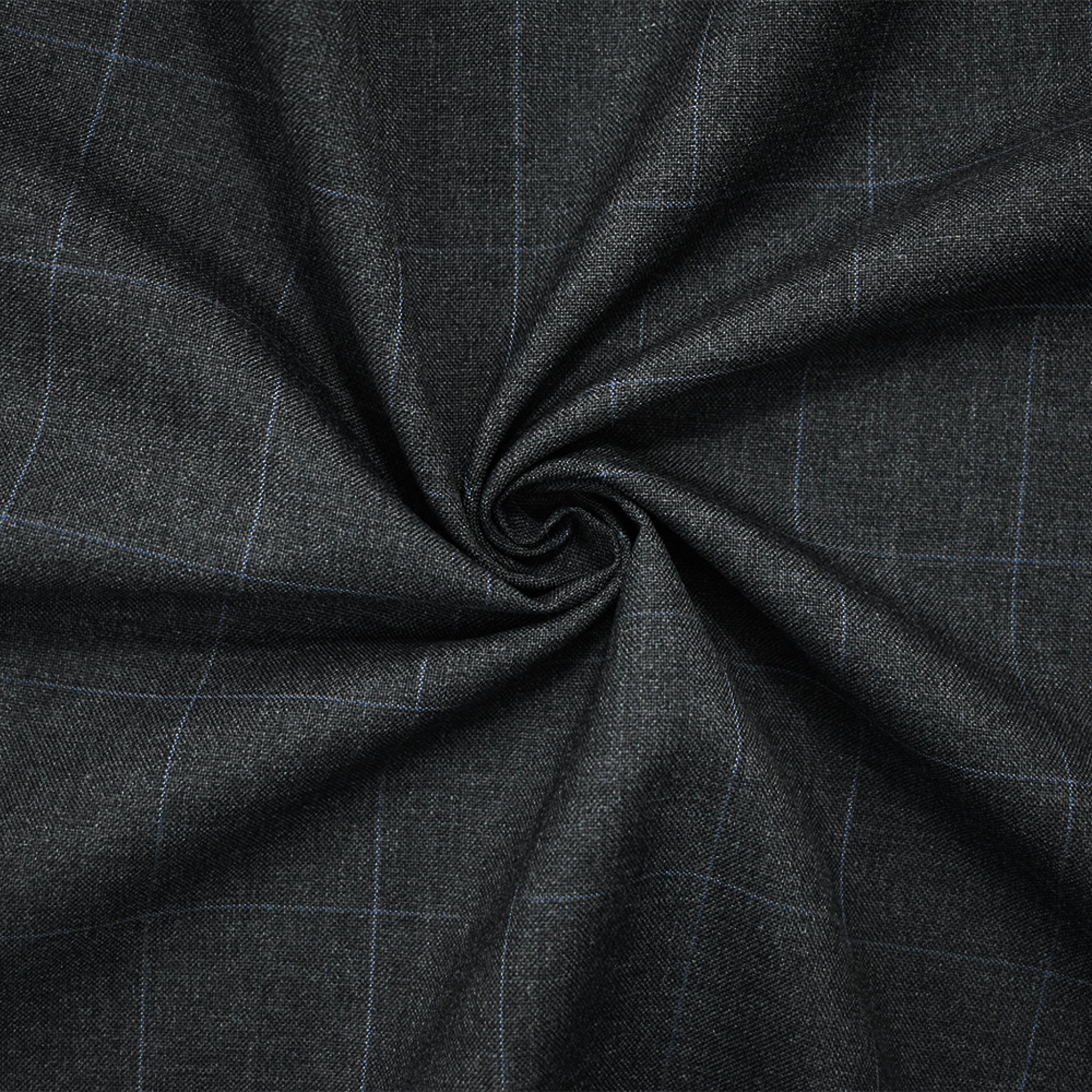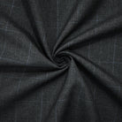 Deep Gray-Black-Blue Wool-Polyester Grid Check Shirting Woven Fabric