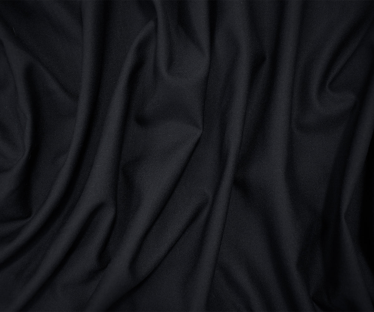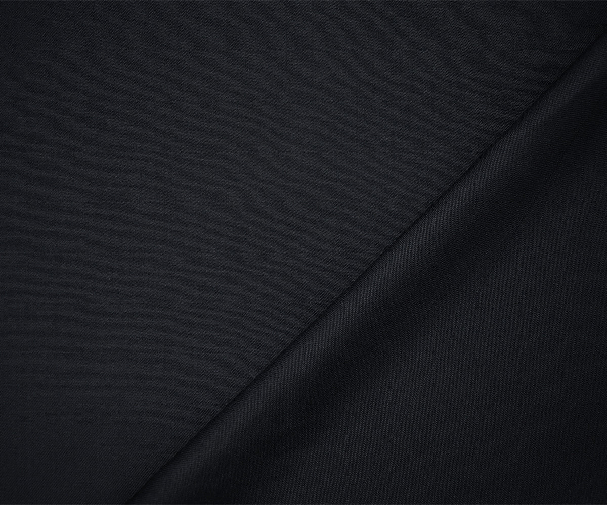 Deep Midnight Blue Wool Cotton Solid Twill Woven Suiting Fabric