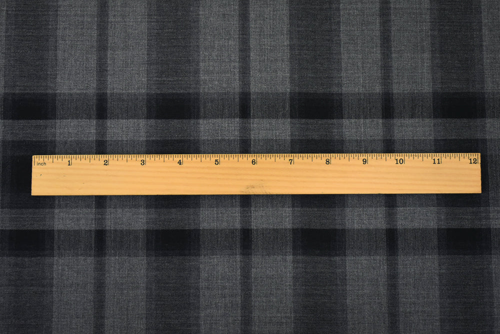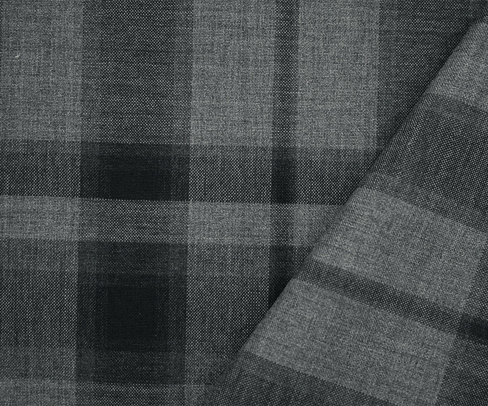 Gray-Black Polyester Wool Plaid Woven Shirting Fabric