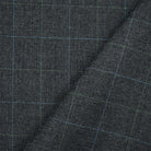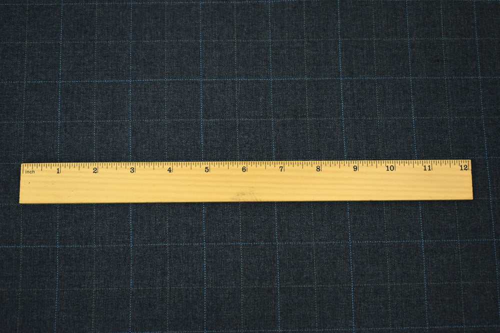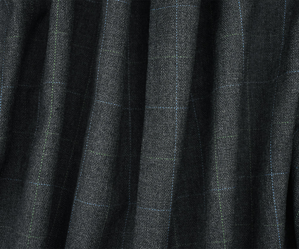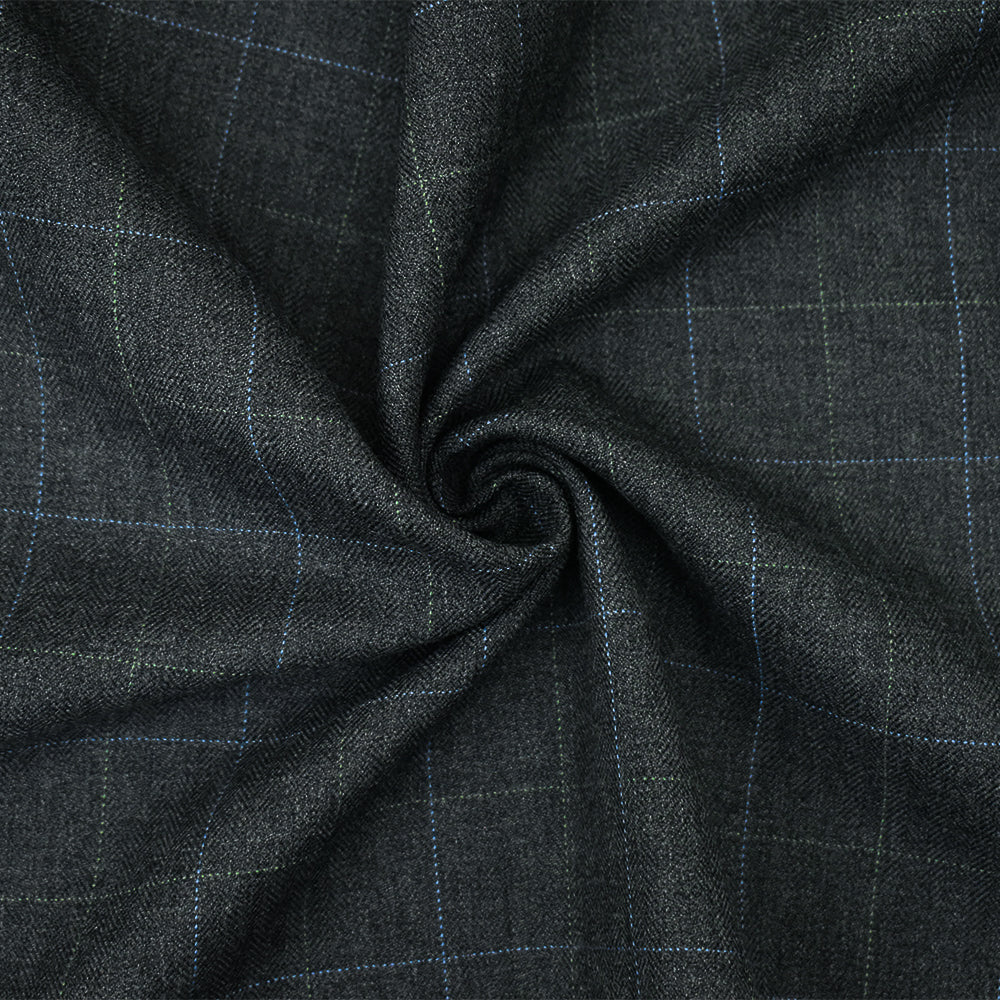 Gray-Blue-Green Poly Wool Check Herringbone Suiting Woven Fabric