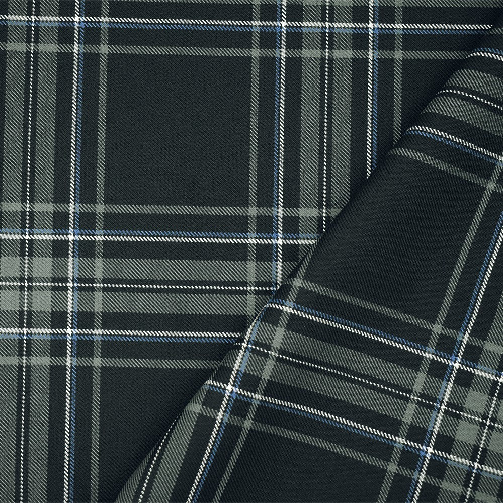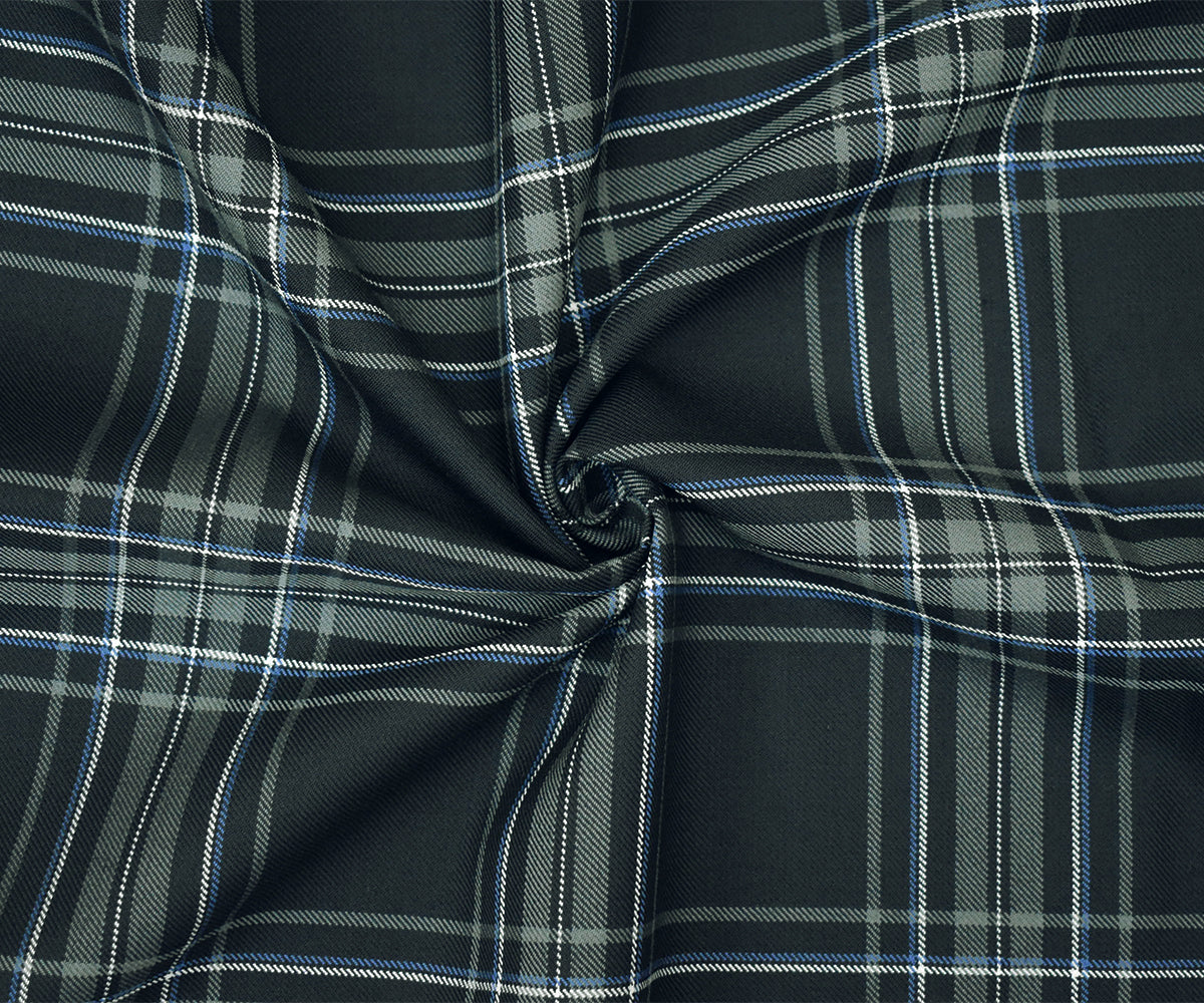 Gray-Blue-Multi Wool Polyester Plaid Twill Suiting Woven Fabric