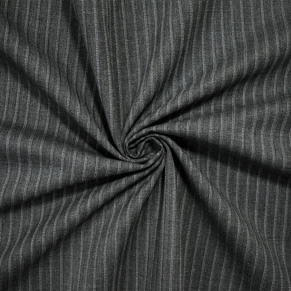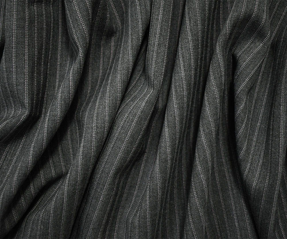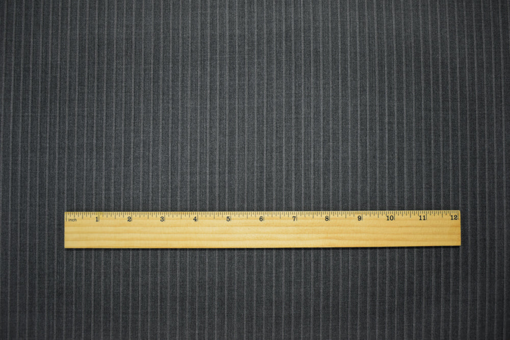 Gray-Pink Poly-Wool Japanese Vertical Pinstripe Twill Woven Suiting Fabric