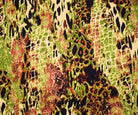 -100% polyester crepe woven with a striated-like texture printed with an abstract animal print pattern