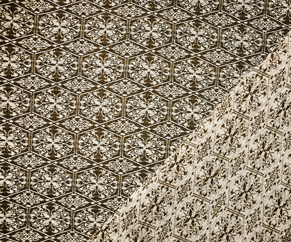-240 gsm, Rayon blend stretch spandex tile and baroque-like patterned jacquard woven fabric