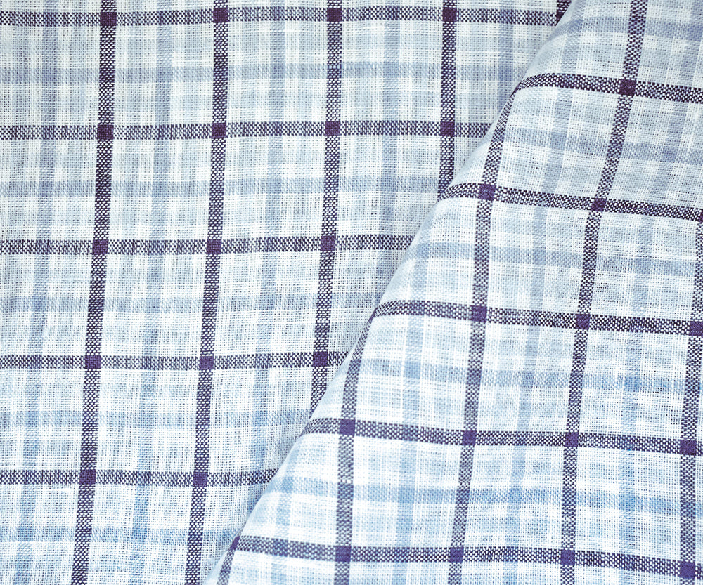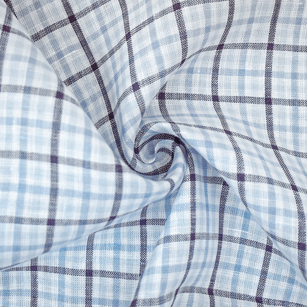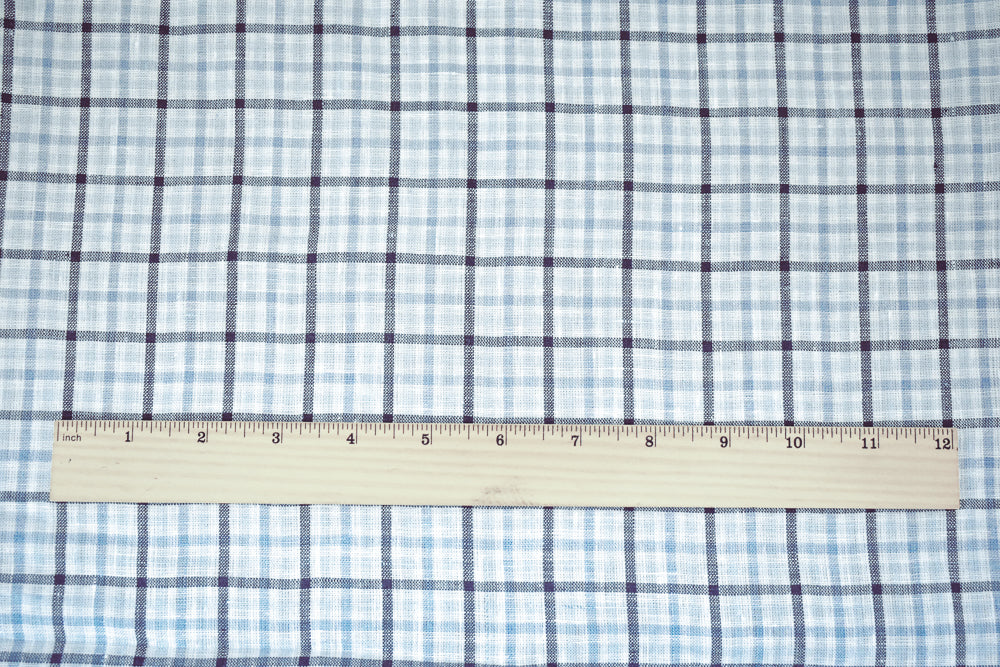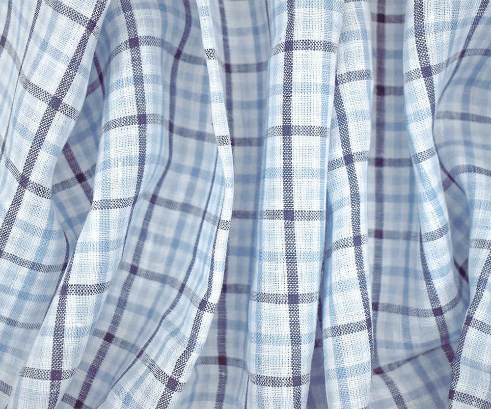 Light Blue-Blue-White Spence Bryson Gingham Check Linen Woven Fabric