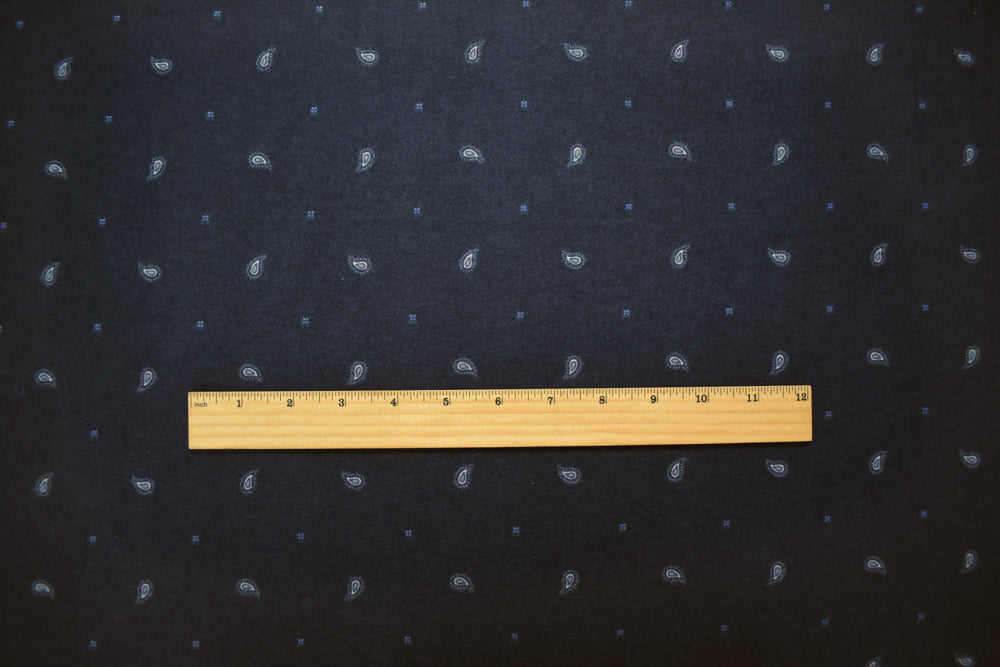 -100% cotton double brushed flannelette woven fabric printed with mini paisley and mini florals. Made in Japan.