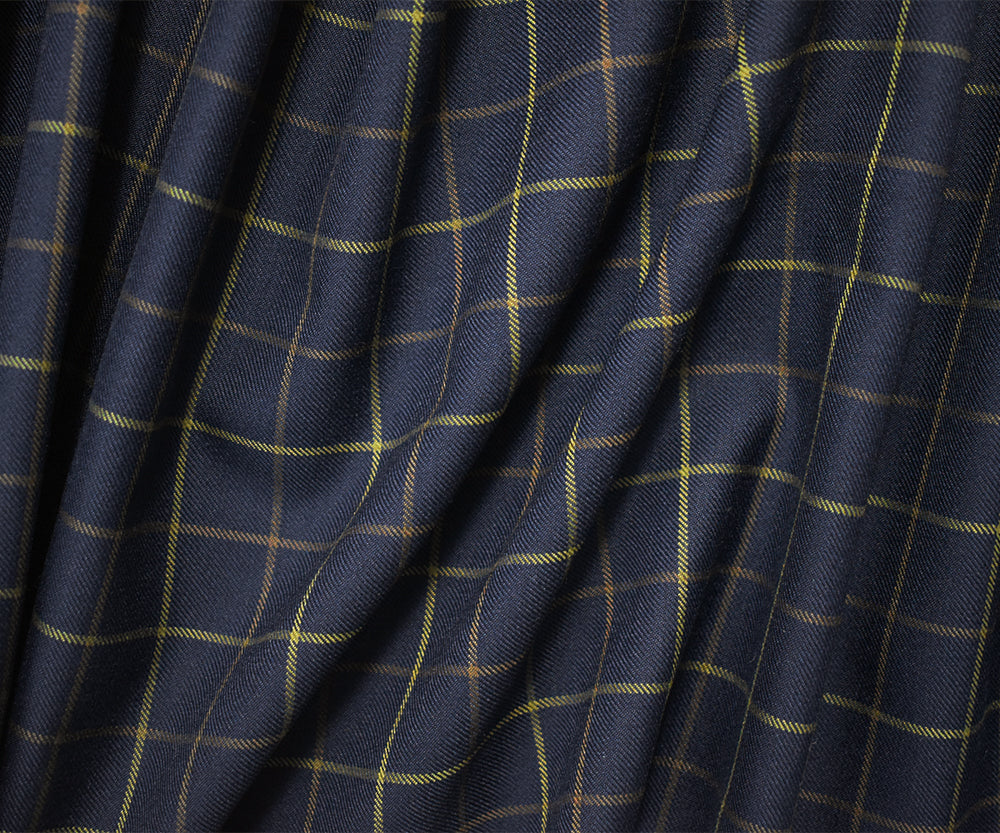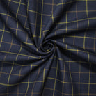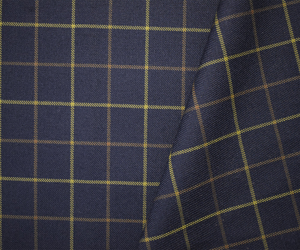 Navy-Yellow-Brown Wool-Poly Japanese Grid Check Twill Woven Suiting Fabric