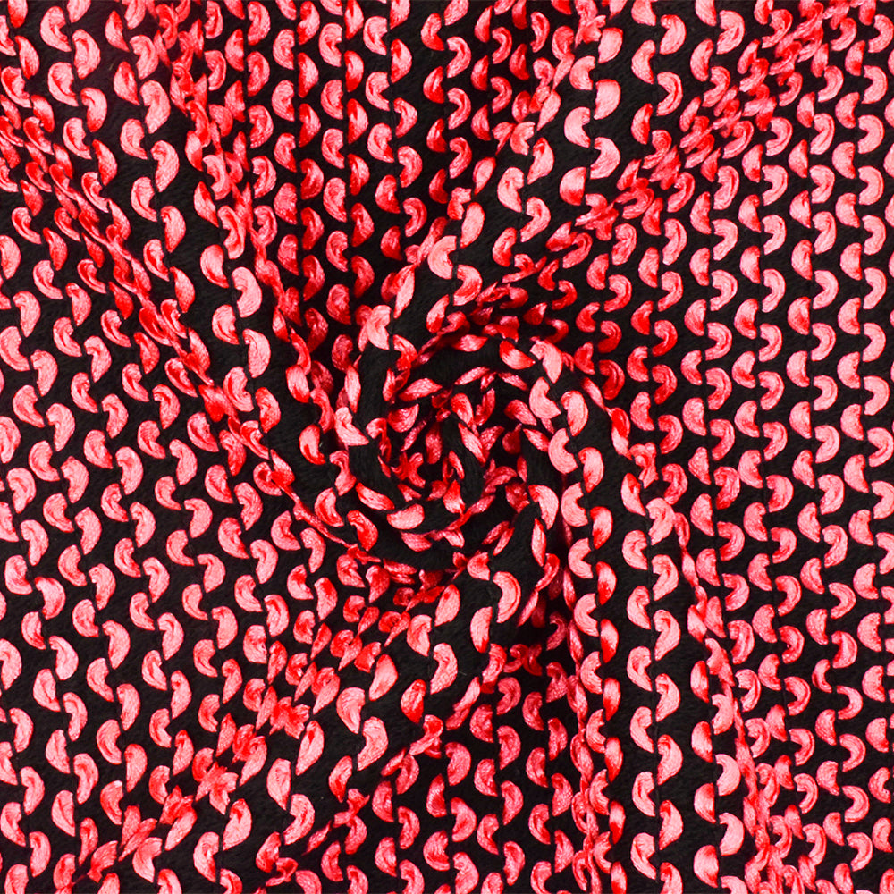 Neon Red-Black 3D Wave Acrylic Poly Woven Jacketing Fabric