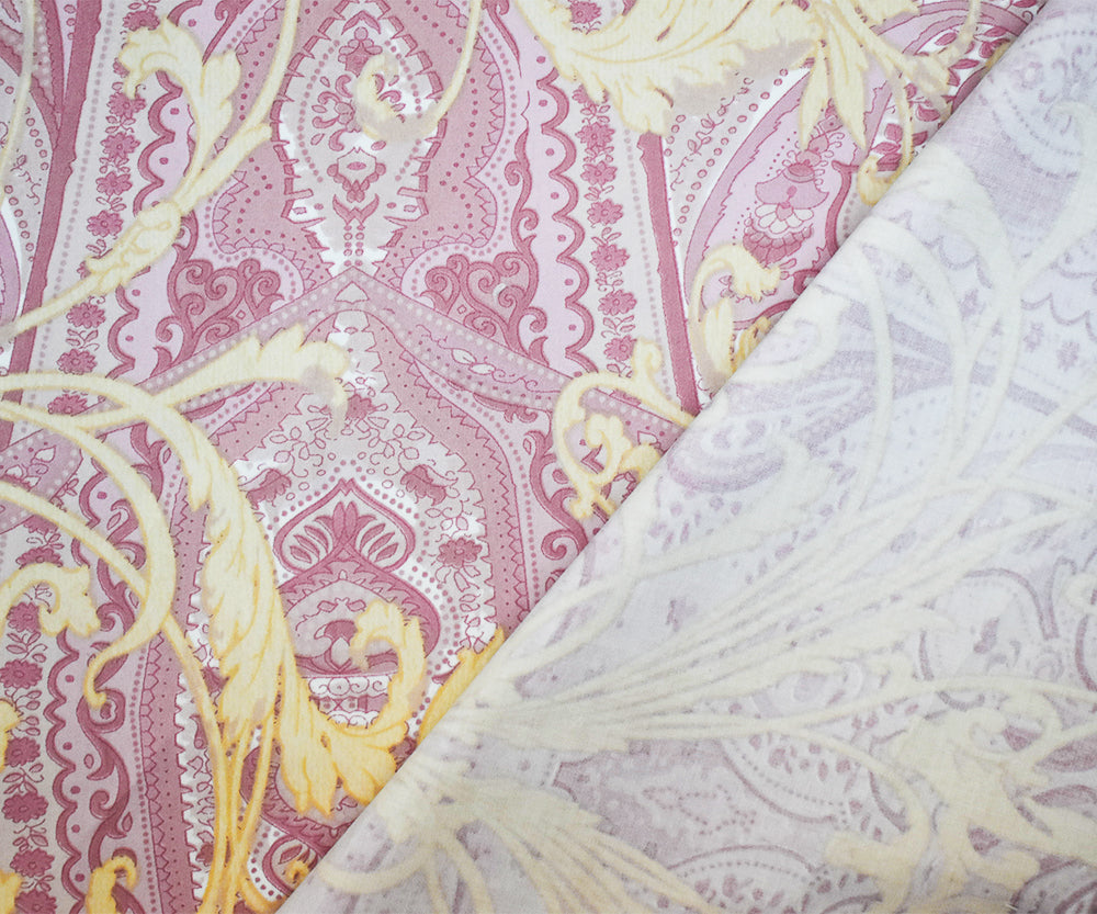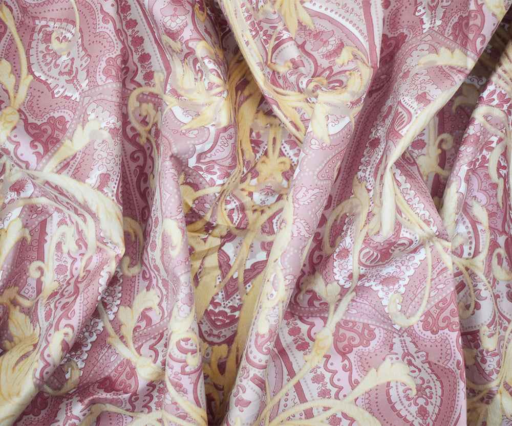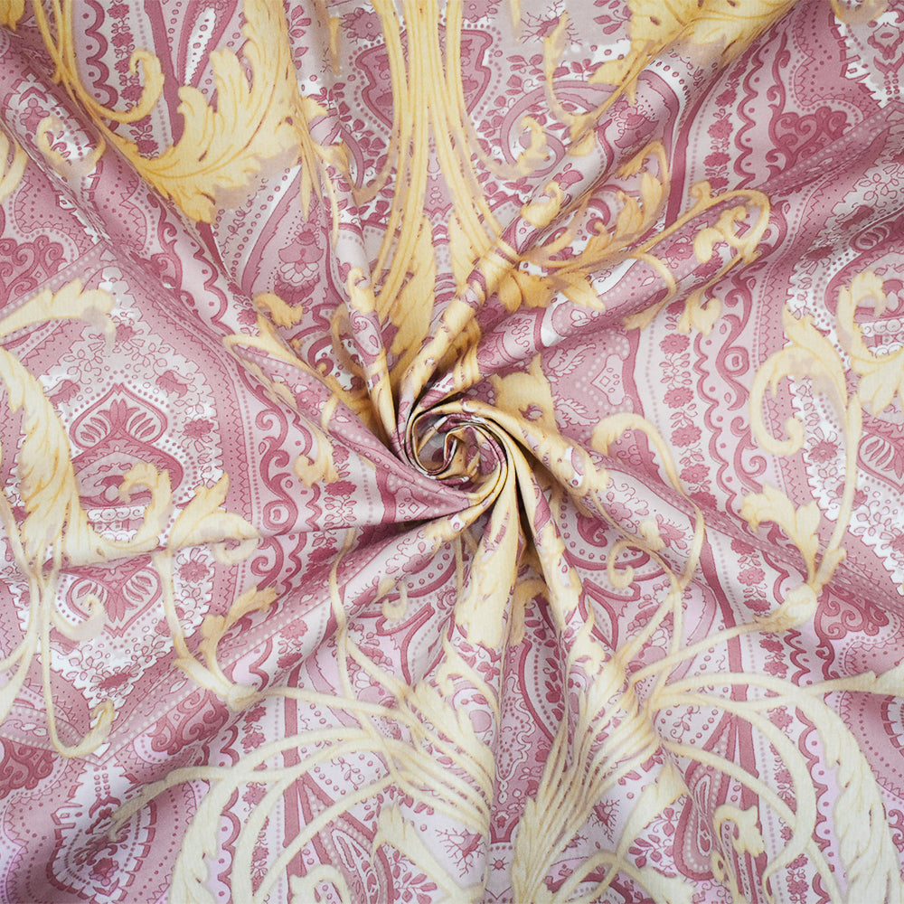 Pink-Beige Paisley Baroque Printed Cotton Sateen Woven Fabric