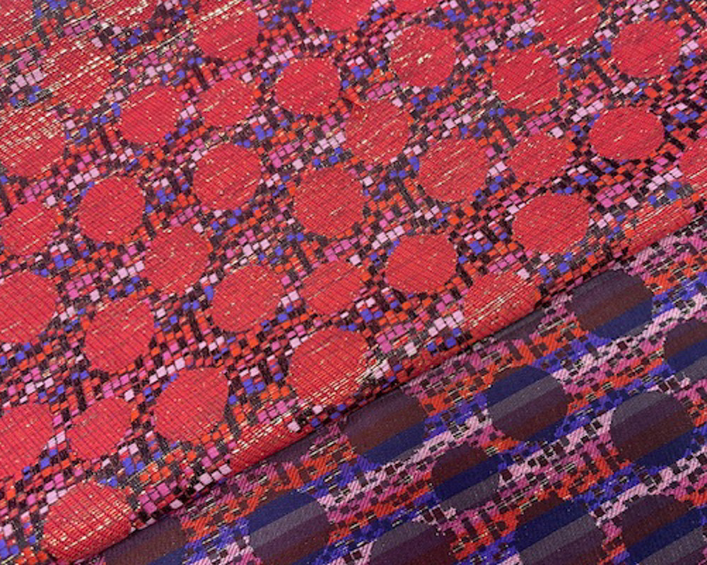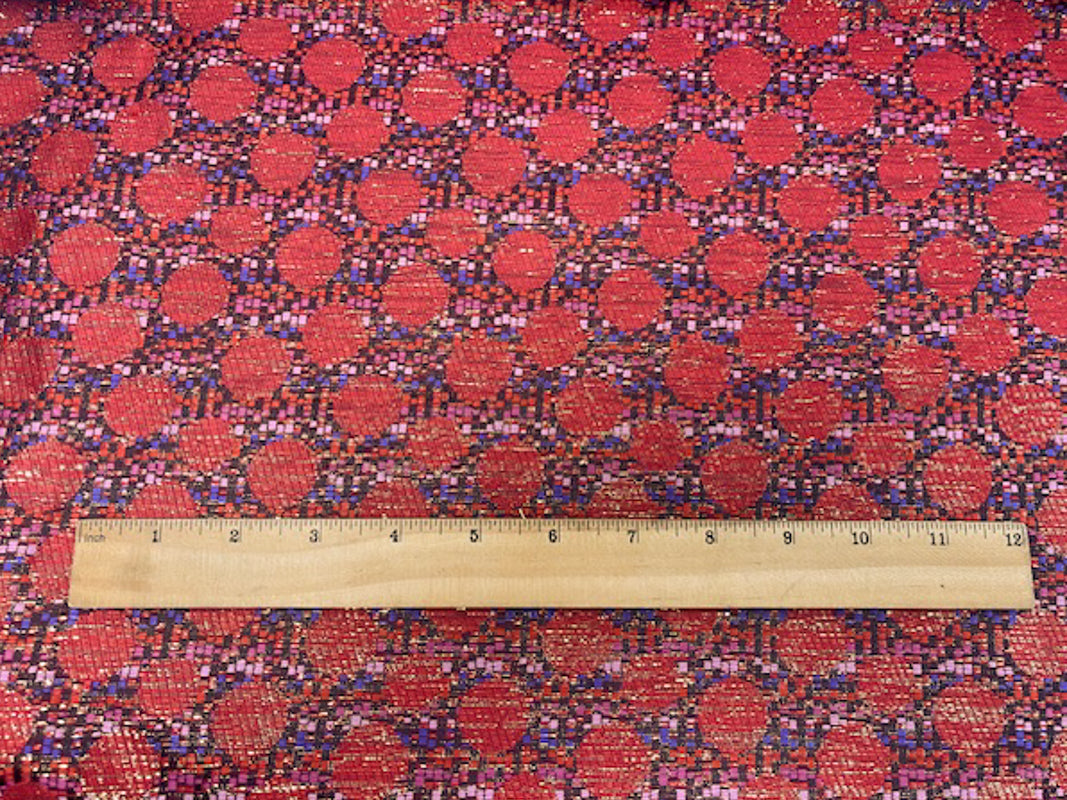 Purple-Gold-Multi Poly Circle Stripe Jacquard Brocade Woven Fabric