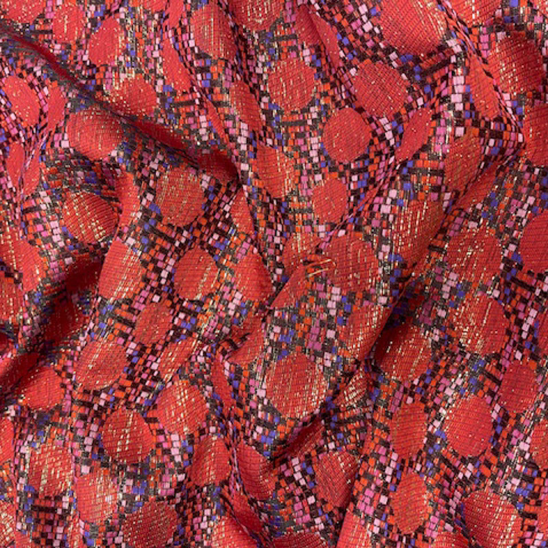 -Reversible polyester and metallic blend jacquard brocade woven fabric