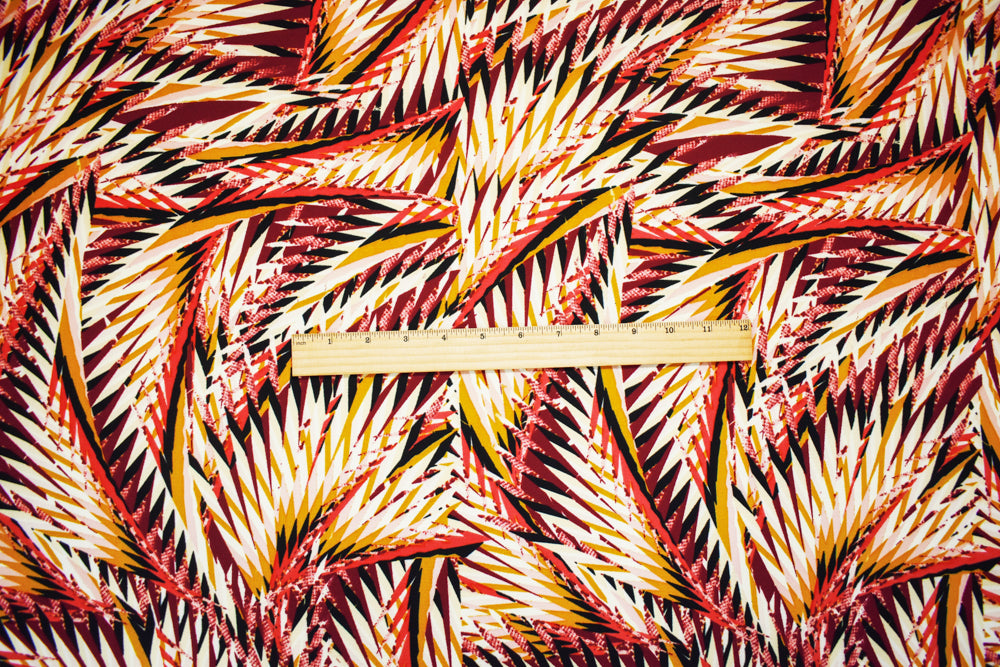 -Red-Beige-Multi Poly Abstract Geometric Printed Pebble Crepe Woven Fabric