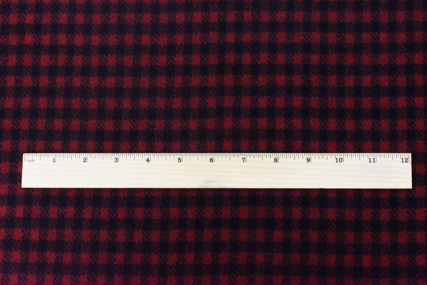Red-Black Check Wool Rayon Twill Suiting Woven Fabric