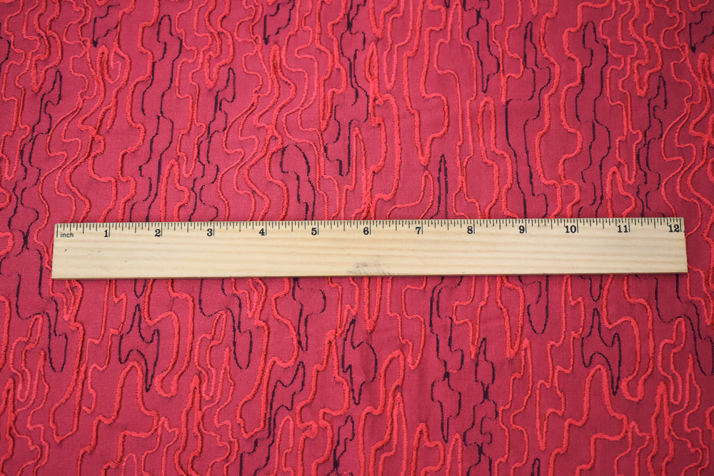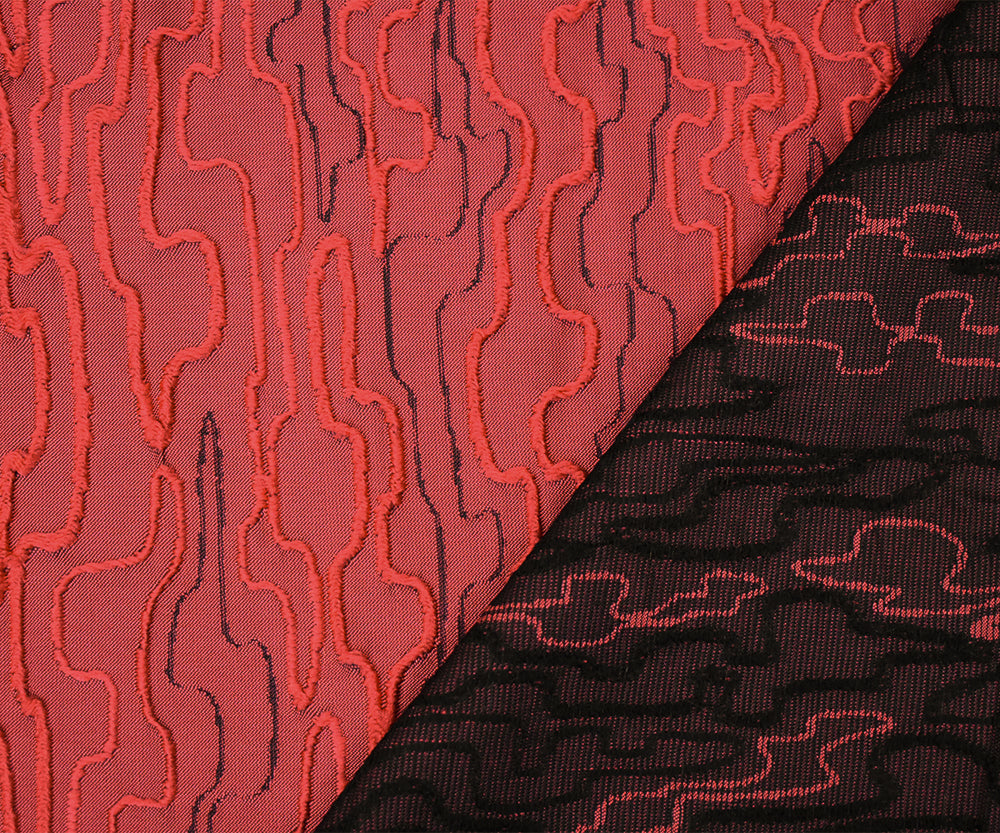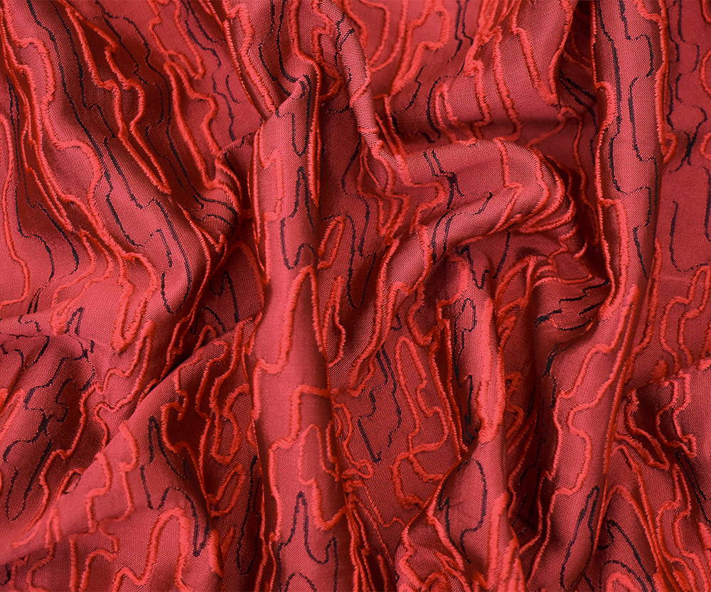 Red-Black Polyester Abstract Embroidered Jacquard Woven Fabric