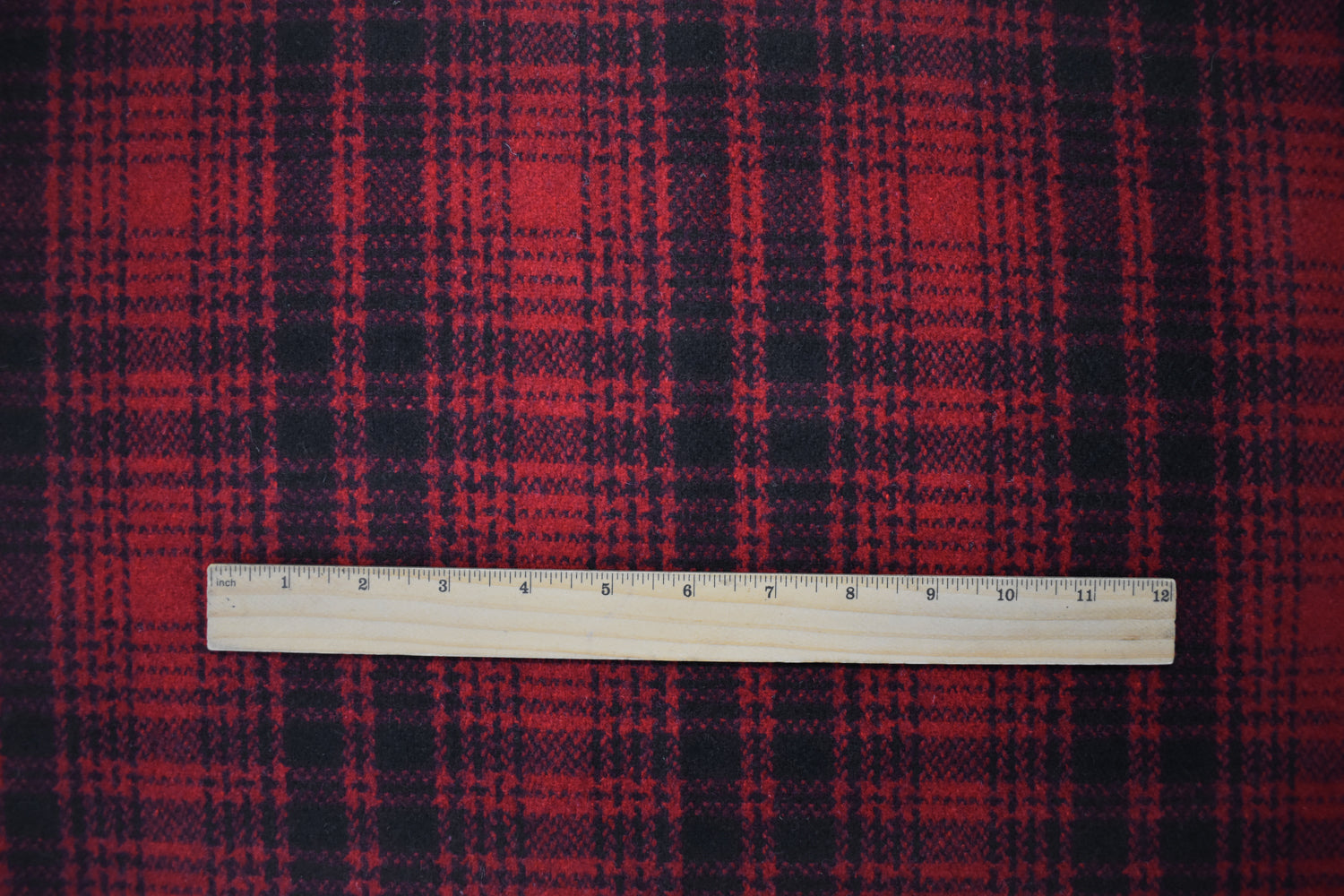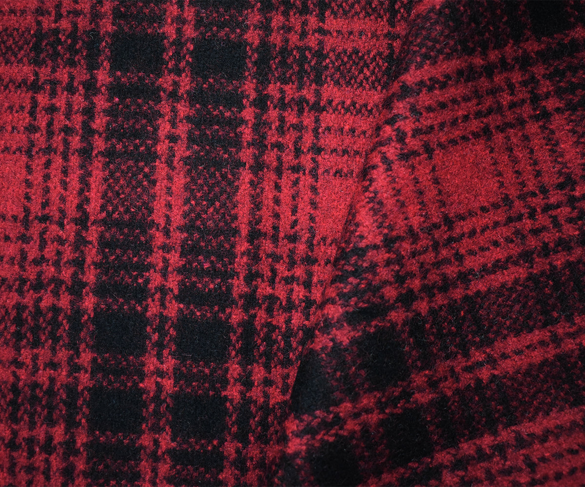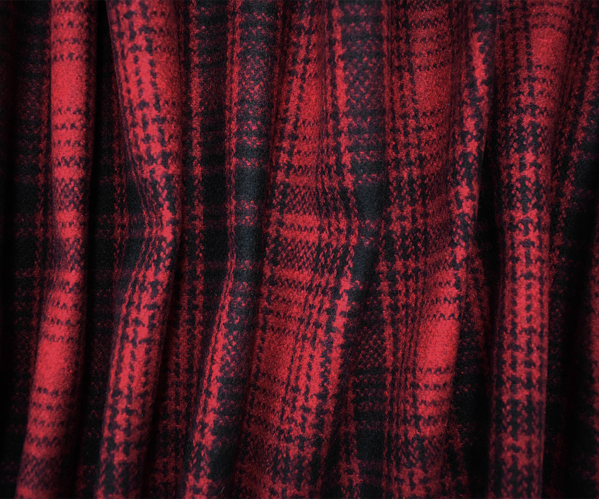 Red-Black Wool Plaid Twill Woven Coating Fabric