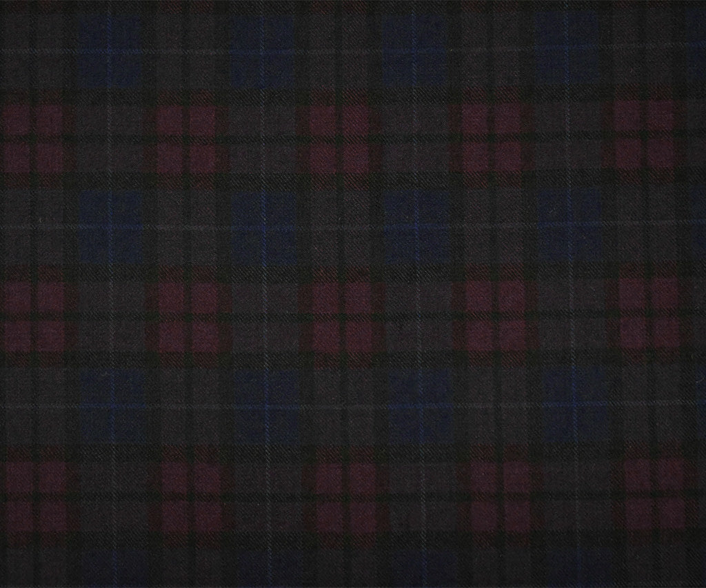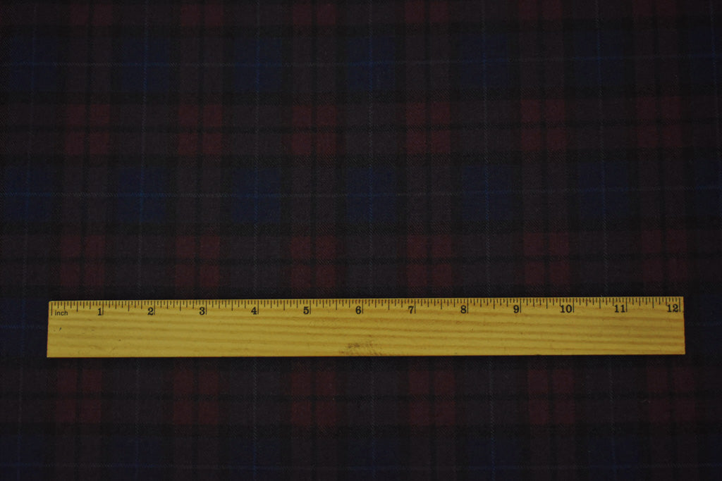 Red-Blue-Black Wool Polyester Plaid Check Twill Suiting Woven Fabric