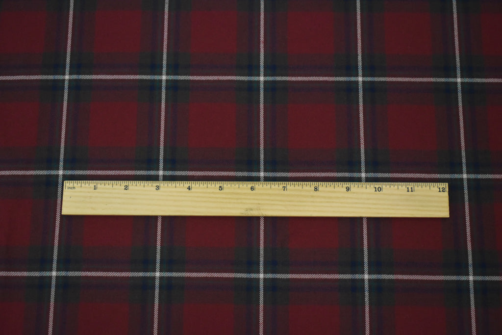 Red-Green-Multi Wool Polyester Plaid Check Twill Woven Suiting Fabric