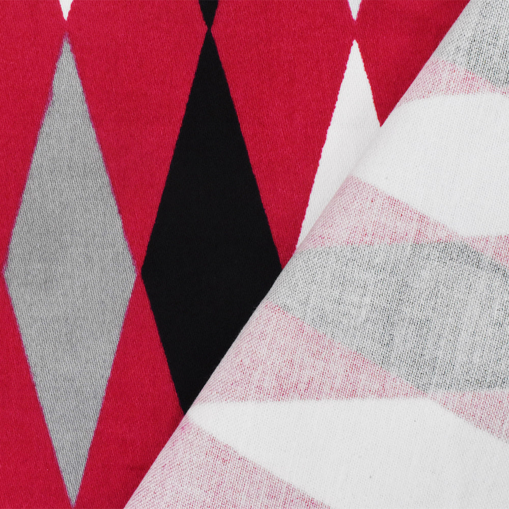 Red-White-Multi Diamond Printed Stretch Cotton Twill Sateen Woven Fabric