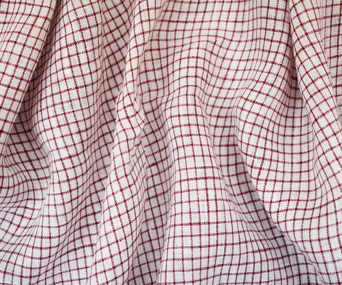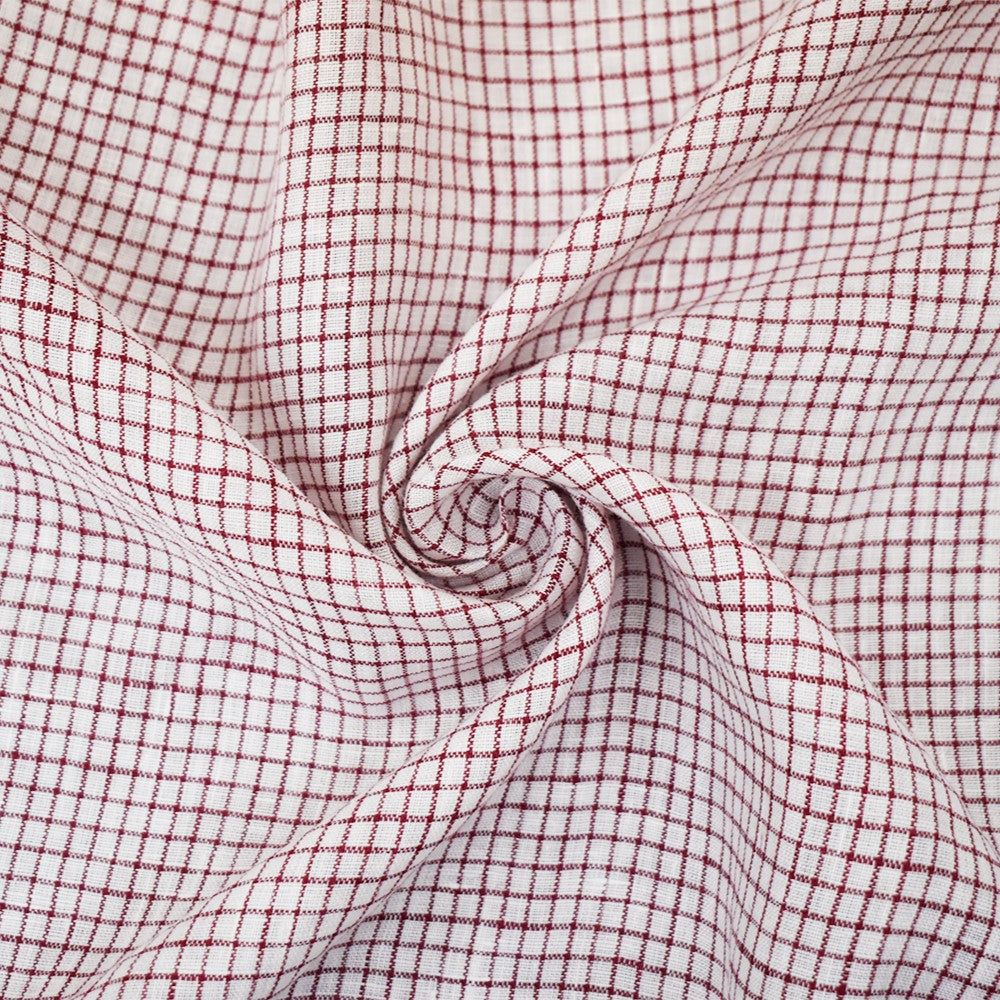 Red-White Spence Bryson Grid Check Washed Irish Linen Woven Fabric