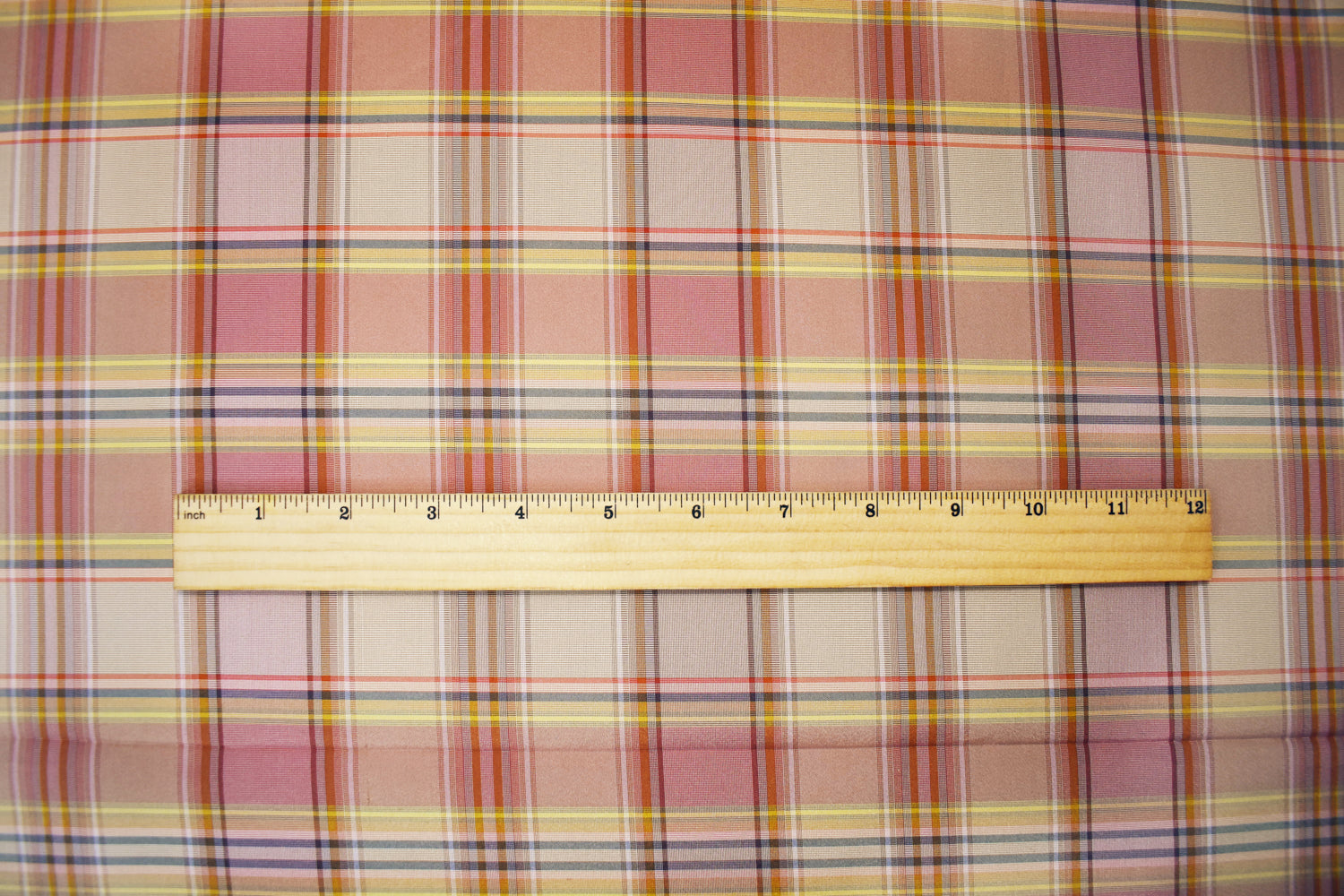 Red-Yellow-Multi Silk Iridescent Plaid Tafetta Woven Fabric