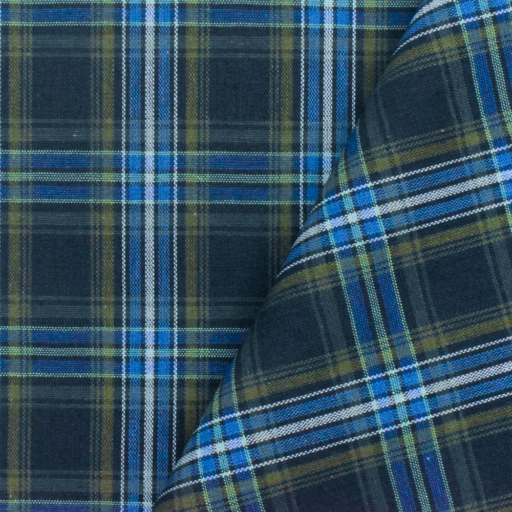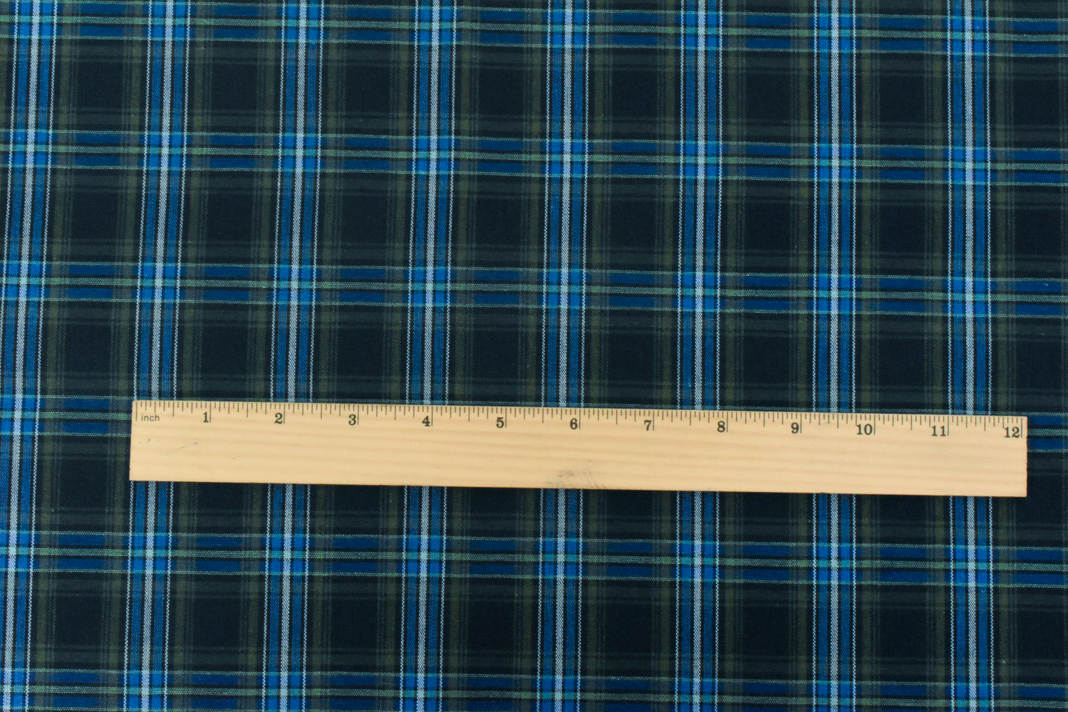 School Blue-Green-Multi Plaid Poly Cotton Madras Woven Fabric