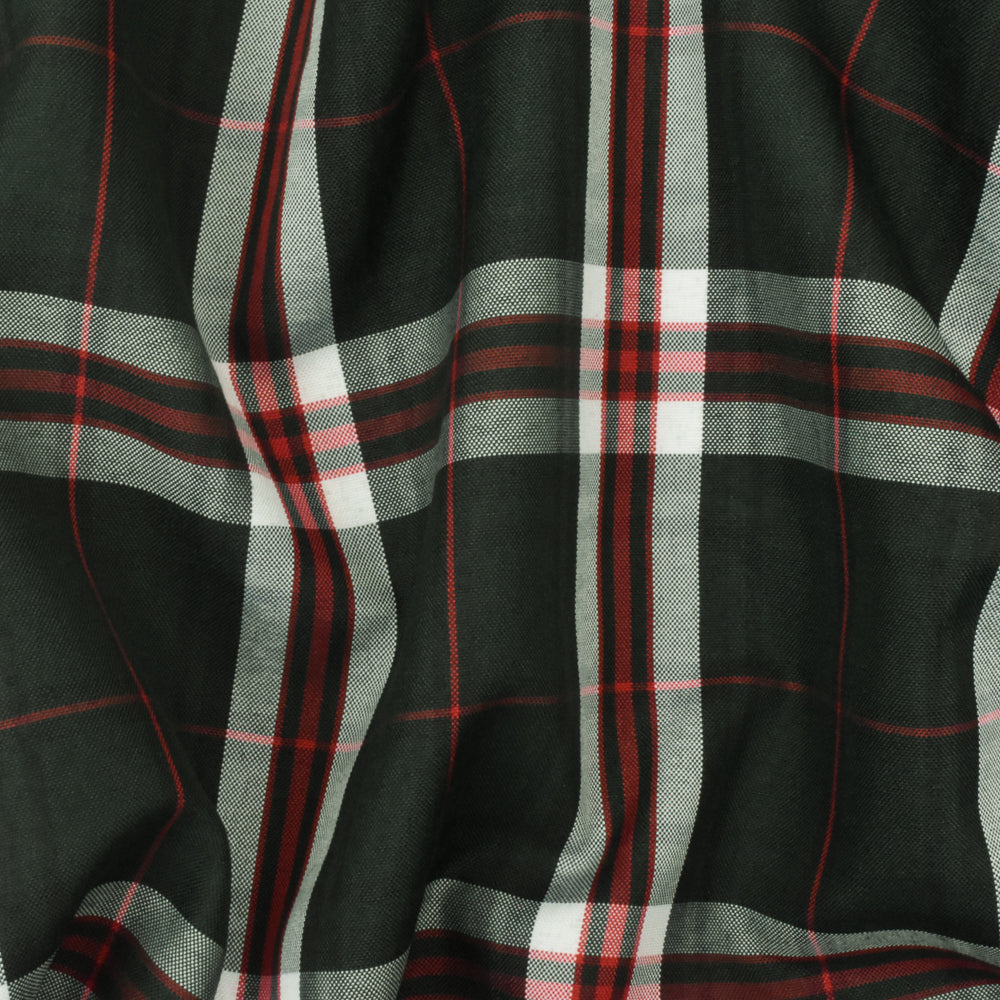 School Green-White-Multi Plaid Poly Madras Woven Fabric