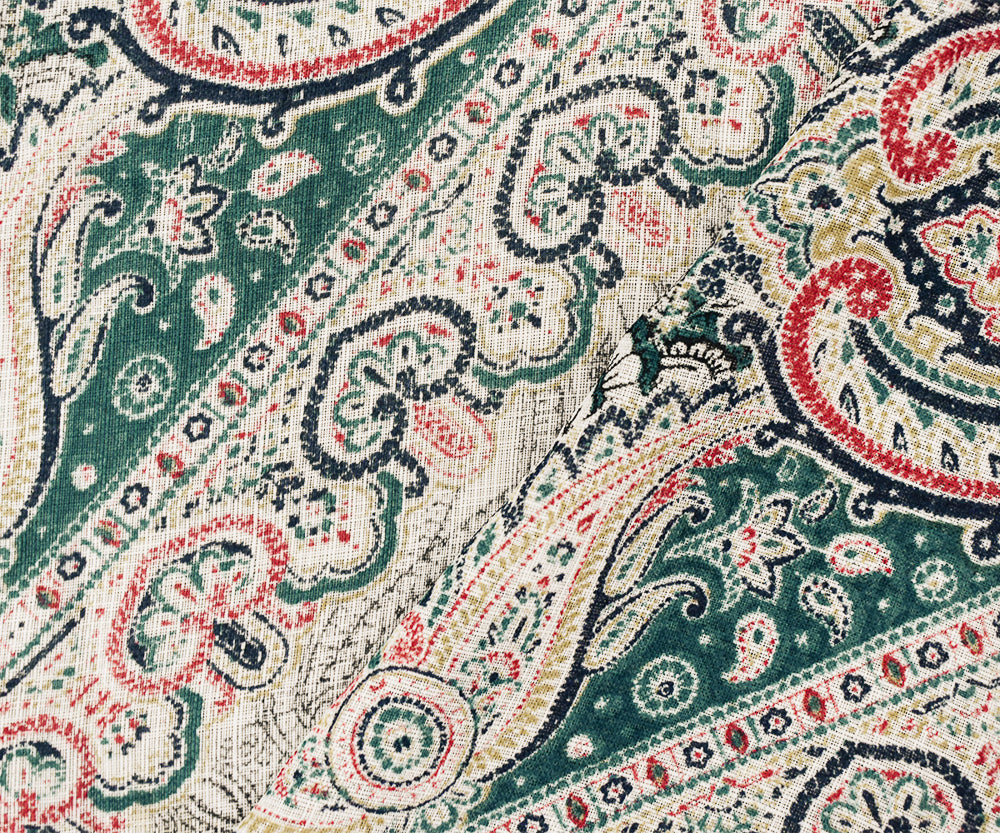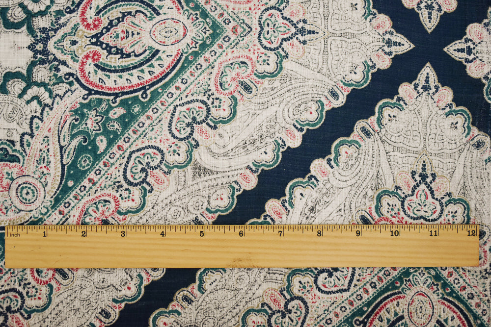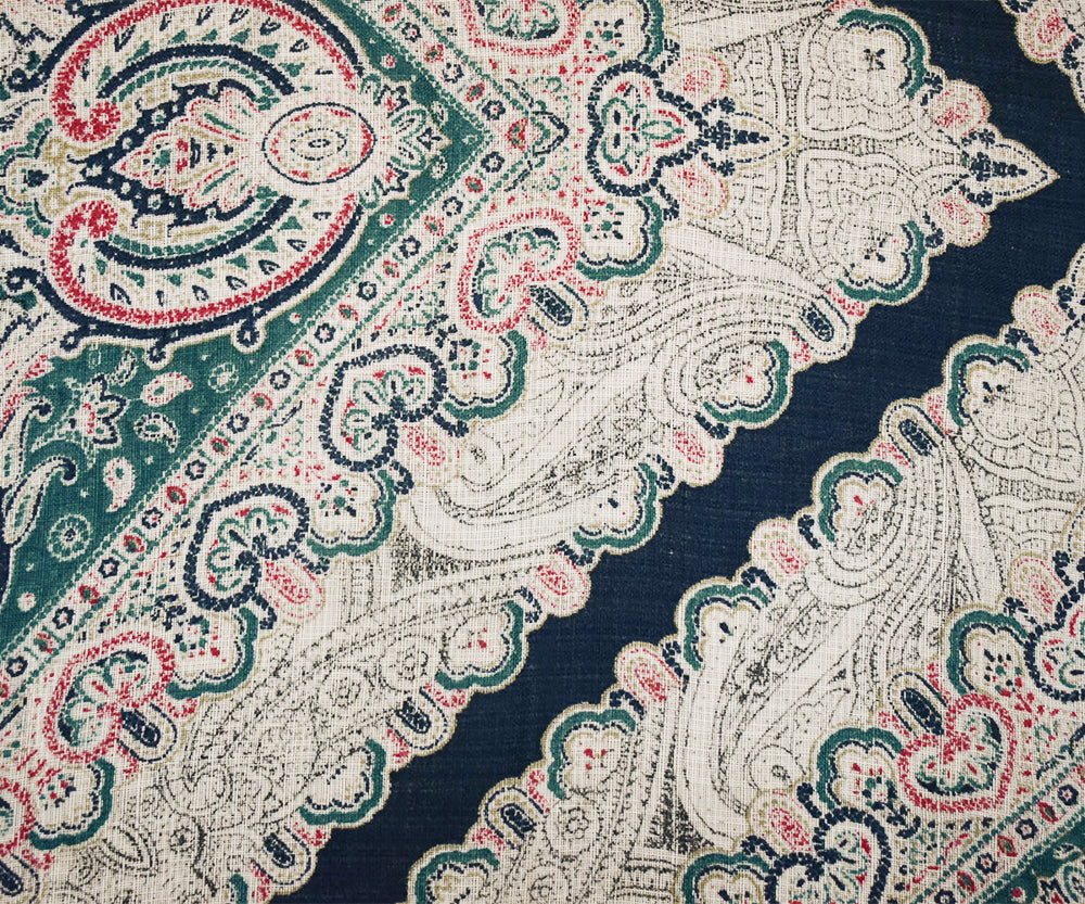 Turquoise-Blue-Multi Nylon Tile Baroque Printed Sheer Woven Fabric