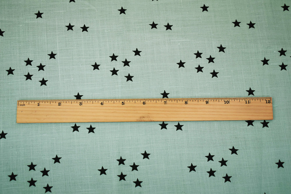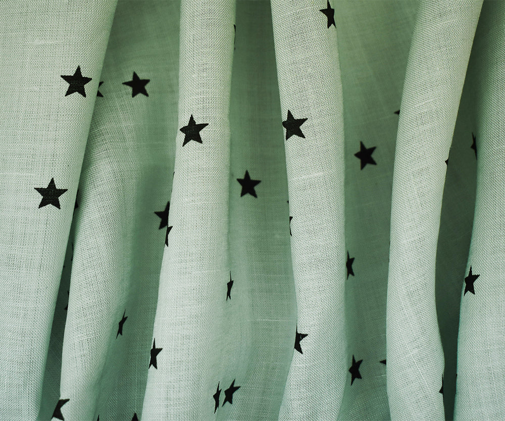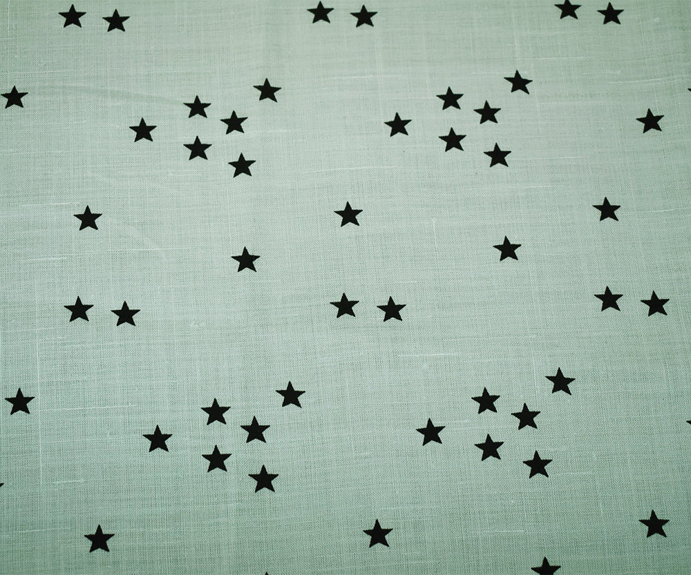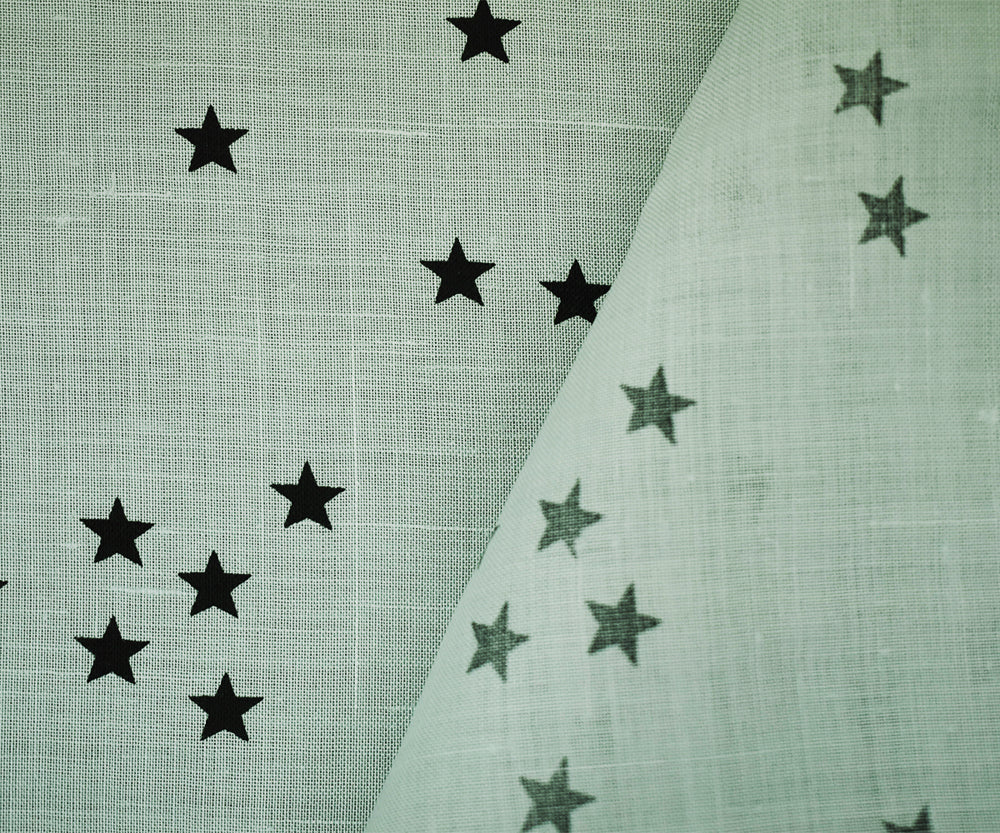 -100% linen plain woven fabric printed with scattered stars. Line if needed.