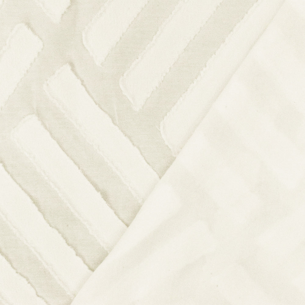 -140 GSM, abstract clip-spot diagonal tile-like pattern with a pleat-like effect. This fabric has a semi-sheer and opaque surface. This fabric will look beautiful as a dress or skirt, as the pleat-like feature adds movement.